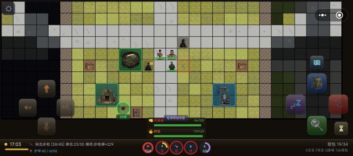①用地板移动时点击开门时弹出的是队友界面开不了门,建议开地板移动会隐藏键位移动替换成队友状态防止误触②左上角的信息太快了有时候看不清楚就没了,建议可以点进去看实时播报,下次出基地时重新刷新③丧尸能不能弄个分类,比如生前是个士兵击败它会掉落枪或防弹衣之类的④基地的仓库都满了,进基地后时间像冻结了似的,建议进基地队友会自动吃喝,基地可以建设种田养殖之类的(先在地图上添加种子肥料等物品),基地内的建筑会到一定的时间需要缓慢维修