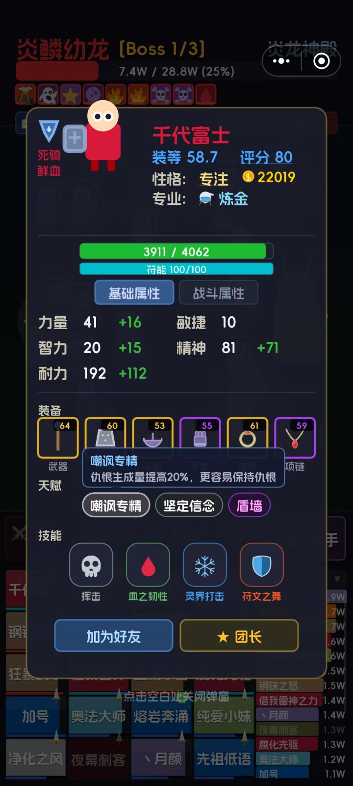 这个职业伤害感觉实在是有点低了。虽然这个人物属性有点问题,但是跟他一起进来的。明显属性一样,伤害都比他高不少