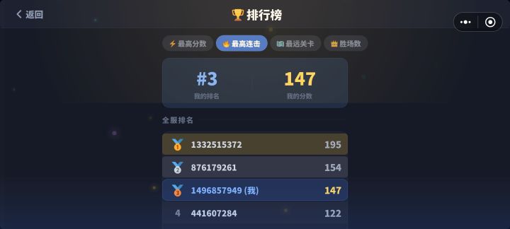 游戏的联机匹配功能非常完善,差不多6秒左右就可以匹配到人,匹配机制非常合理。而且联机玩法很有竞技性,有利于增加游戏社交。游戏还有内置排行榜功能,这些都是能增加游戏时长的东西。