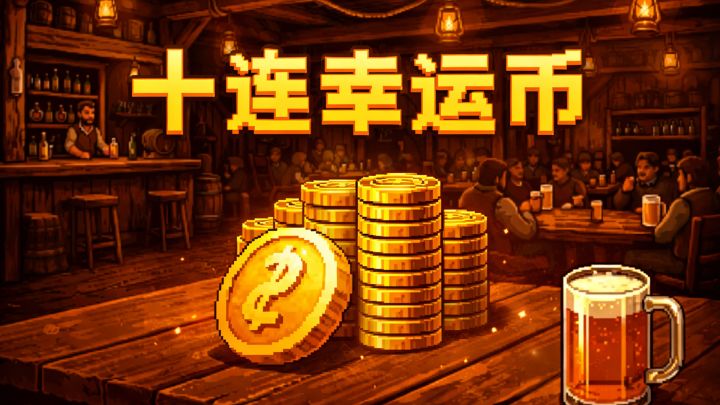 《十连幸运币》是一款像素风格的休闲点击游戏。在悠闲的酒馆里抛掷硬币、积攒能量,升级幸运值、能量收益、连击奖励、抛掷速度等属性,挑战连续抛出10次正面的终极目标!