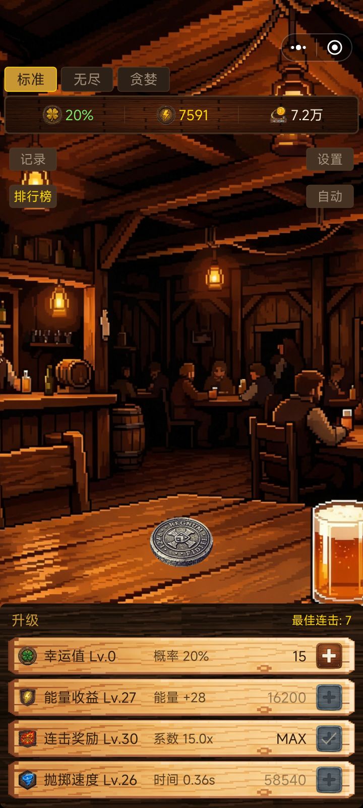 游戏特色:将点击游戏与抛硬币的随机性结合,尝试做出让人欲罢不能的上头机制!