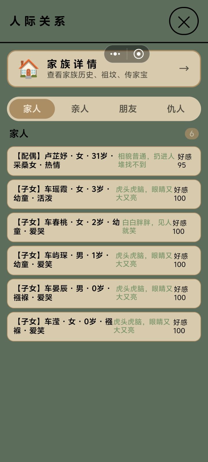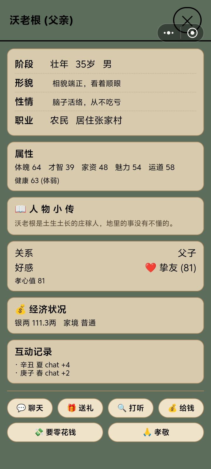 父母每个人都有至少一百两,但是家产最高只有6两,还有就是,什么时候能下载了玩,只能启动在Tap里玩很难受