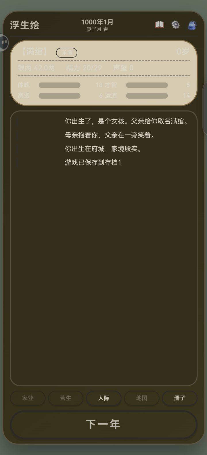 目前bug还挺多的,但可以期待一下后续更新 #我的游戏日记vol14 #游戏安利 #游戏推荐 #游戏讨论 #休闲游戏 #文字游戏 #模拟 #浮生绘百味人生