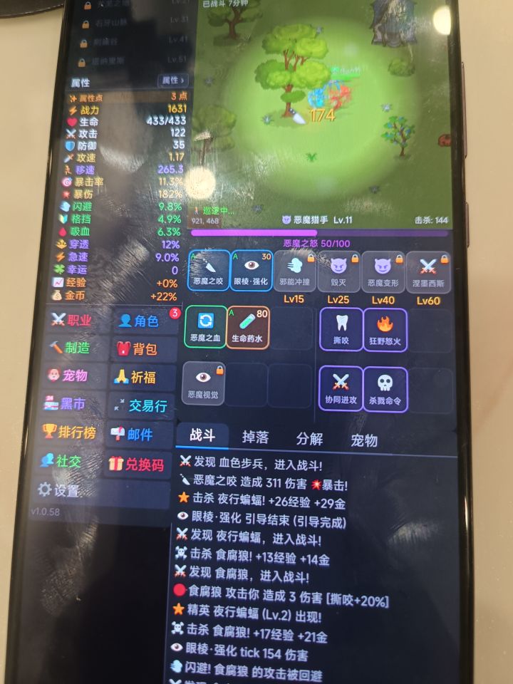 我做了一款有"地图",能战斗的挂机游戏!!先问个问题:你玩过多少挂着"RPG"名头的文字挂机游戏?左边一个怪物头像,右边是滚动的战斗日志:"你对骷髅战士造成了124点伤害"、"骷髅战士对你造成了56点伤害"……地图是列表里的文字按钮,装备是表格里的数字行,宠物是头像框里的静态图片。我们受够了。所以闭关开发的这段时间以来,我做了一款真正意义上的2D挂机RPG。🗺️ 首先,它有张"地图"不是