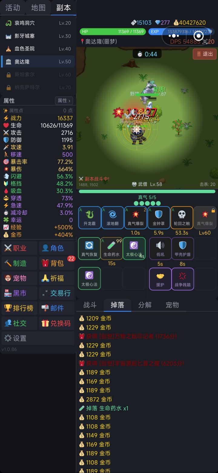 我做了一款有"地图",能战斗的挂机游戏!!先问个问题:你玩过多少挂着"RPG"名头的文字挂机游戏?左边一个怪物头像,右边是滚动的战斗日志:"你对骷髅战士造成了124点伤害"、"骷髅战士对你造成了56点伤害"……地图是列表里的文字按钮,装备是表格里的数字行,宠物是头像框里的静态图片。我们受够了。所以闭关开发的这段时间以来,我做了一款真正意义上的2D挂机RPG。🗺️ 首先,它有张"地图"不是