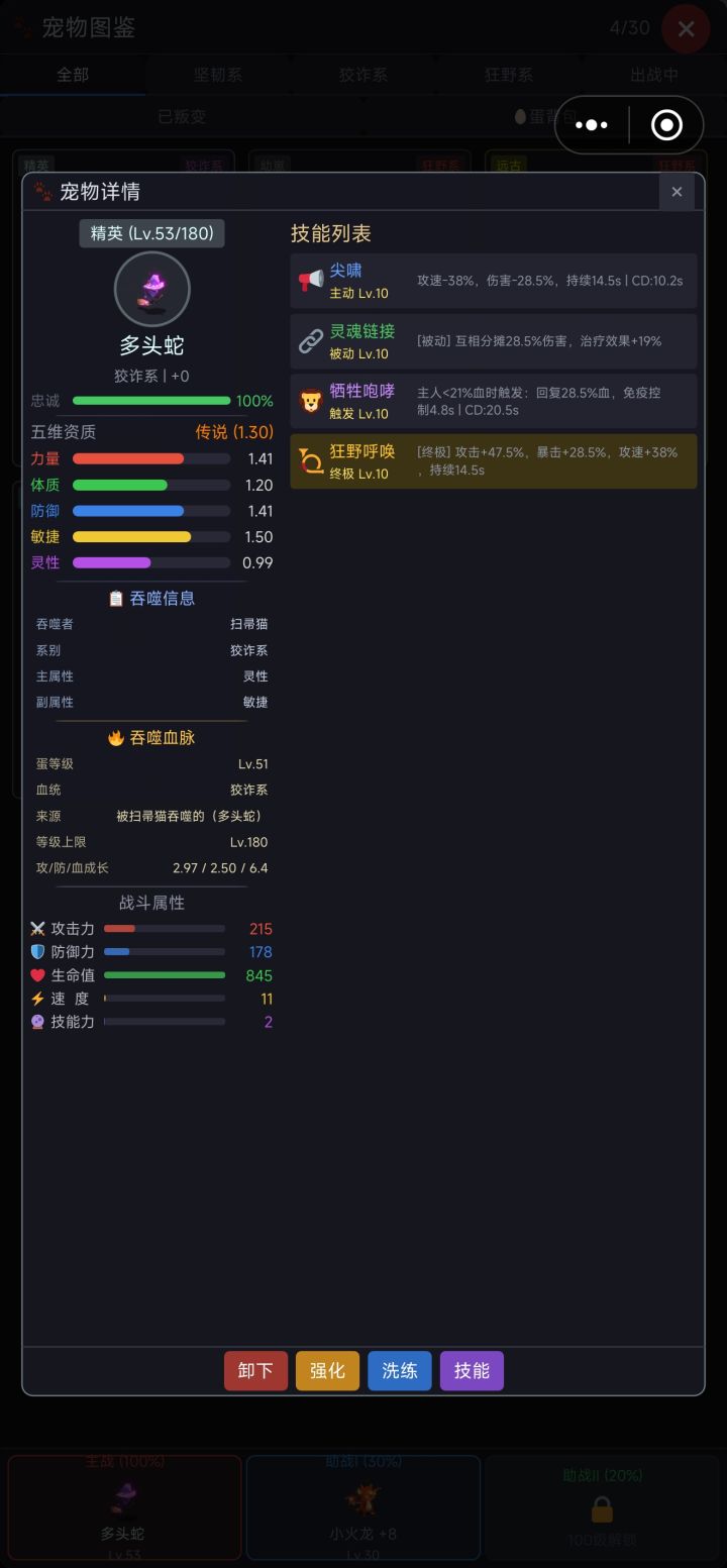 这个狂野呼唤加的是人物的还是宝宝的,如果加的是人物的,攻击应该是2100的数值,可是只有1500,如果加的是宝宝的,如图宝宝也不攻击啊,有啥用?你说他没加吧,攻击力还提高了100多,咋算的?还是bug。因为有2技能灵魂链接,但是宝宝53级只有800血,一直暴毙。哎,开发者加油吧,初始送的30级2600血。现在大部分玩家都50级了,急需一转觉醒,在线等。