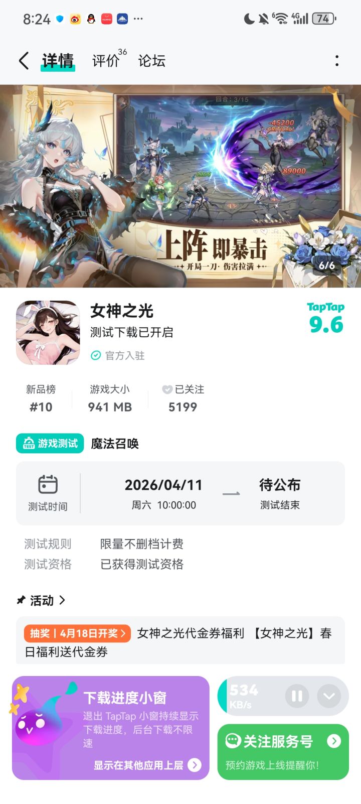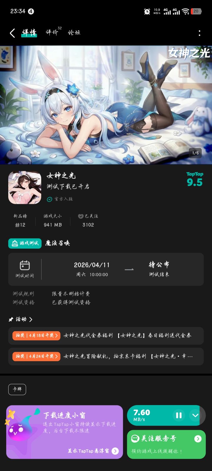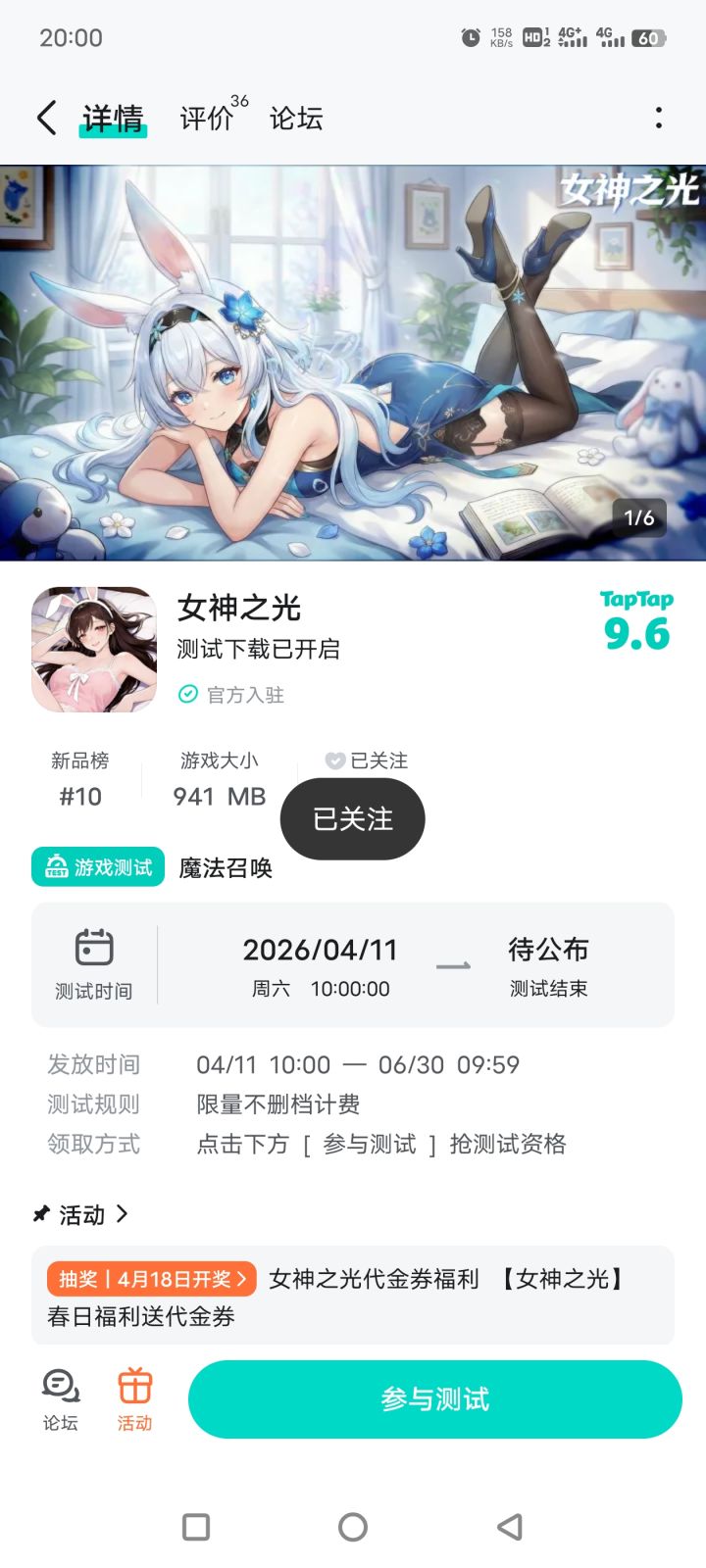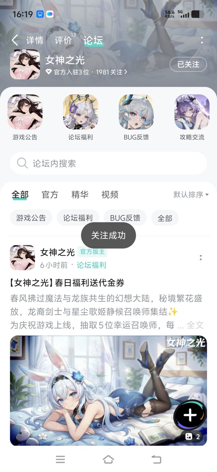 春风拂过魔法与龙族共生的幻想大陆,秘境繁花盛放,龙裔剑士与星尘歌姬静候召唤师集结✨为庆祝游戏上线,抽取 5 位幸运召唤师,每人赠送20元代金券(无套路直充券,助力养成心仪幻想角色)⏰ 活动时间即日起 — 2026 年 4 月 17 日 23:59📝 参与方式①关注游戏②在本帖下方留言即可参与:留下1句与游戏有关的留言参考示例:假期要在女神之光培养专属女神!🎊 开奖与领奖活动