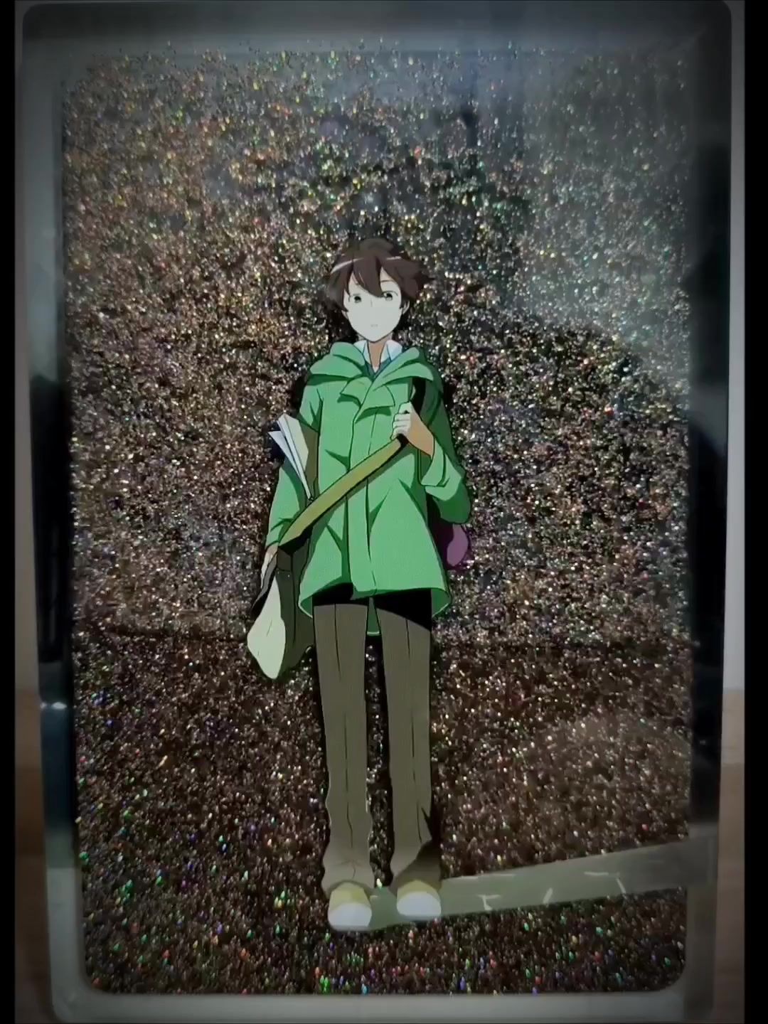 [表情_捂脸哭]第一次做流麻…配粥完全没经验… 想整个“仿佛要从记忆的尘埃里抓住什么”的效果…选的黑色+香槟色沙[表情_吐舌头]结果这个沙流起来闪烁着红配绿的土味光芒…而且沙装太多了…麟和狗子都被淹没…