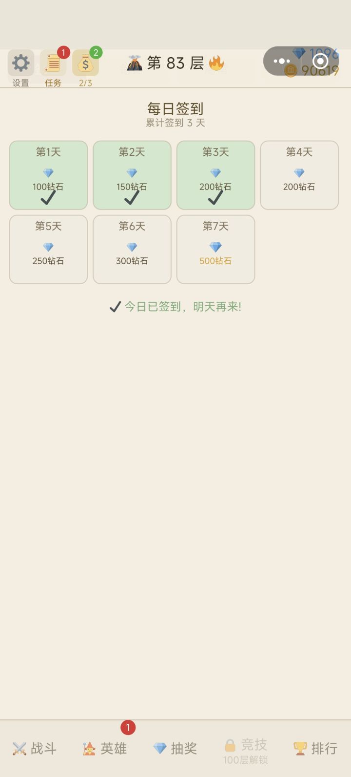 2026.4.2. 20.40分 游戏清档重开(设置查看最新版本21),补偿1000钻石,补偿码:buchang123