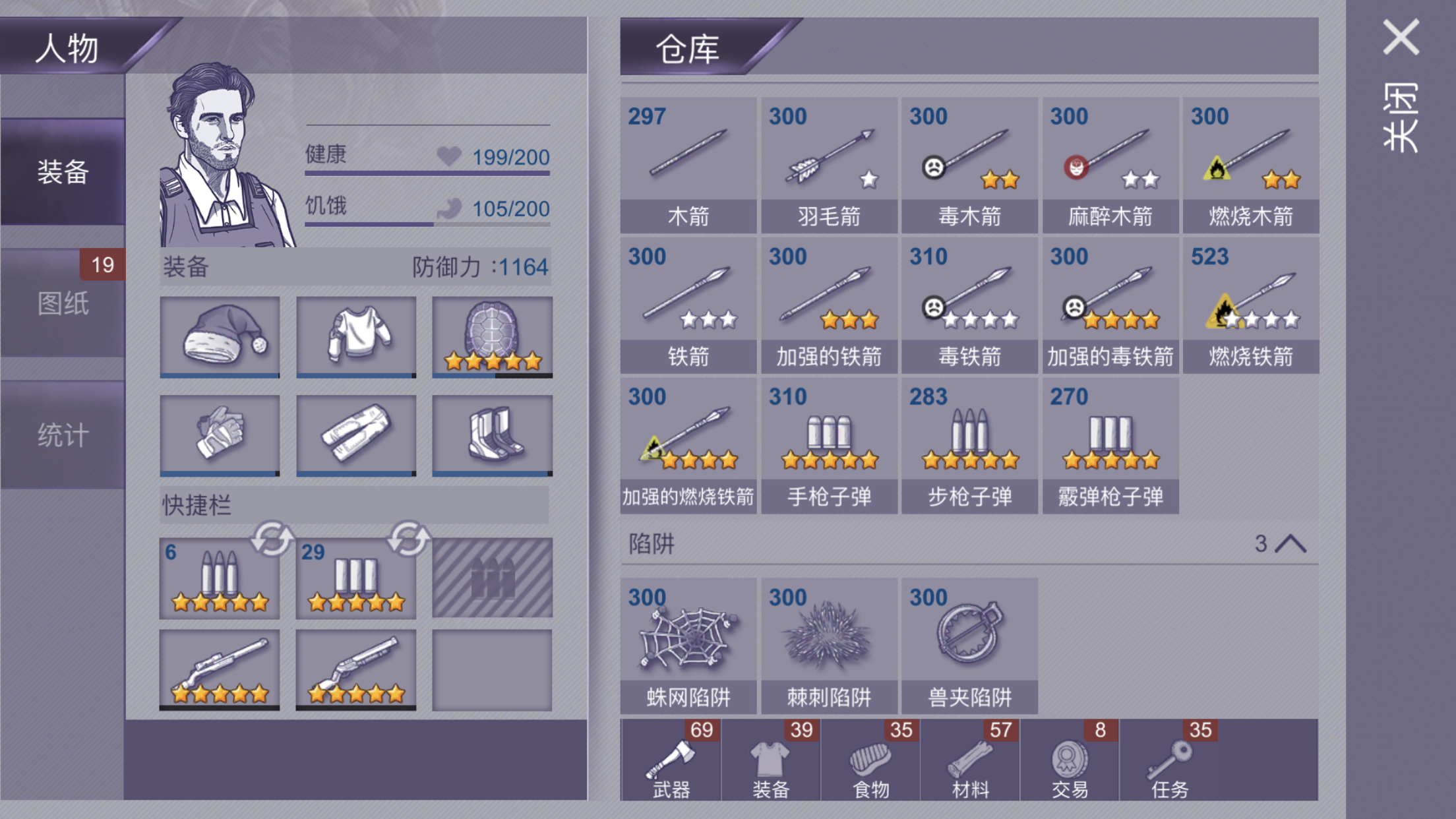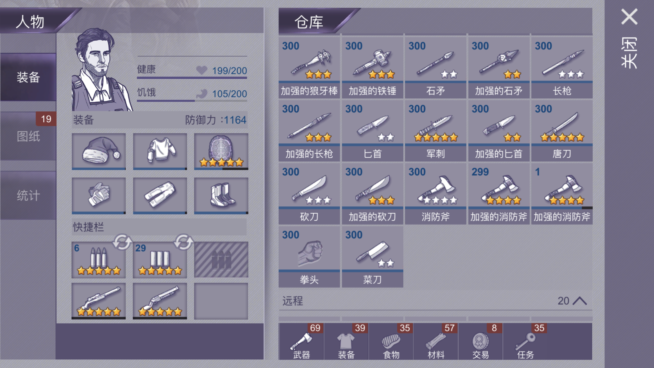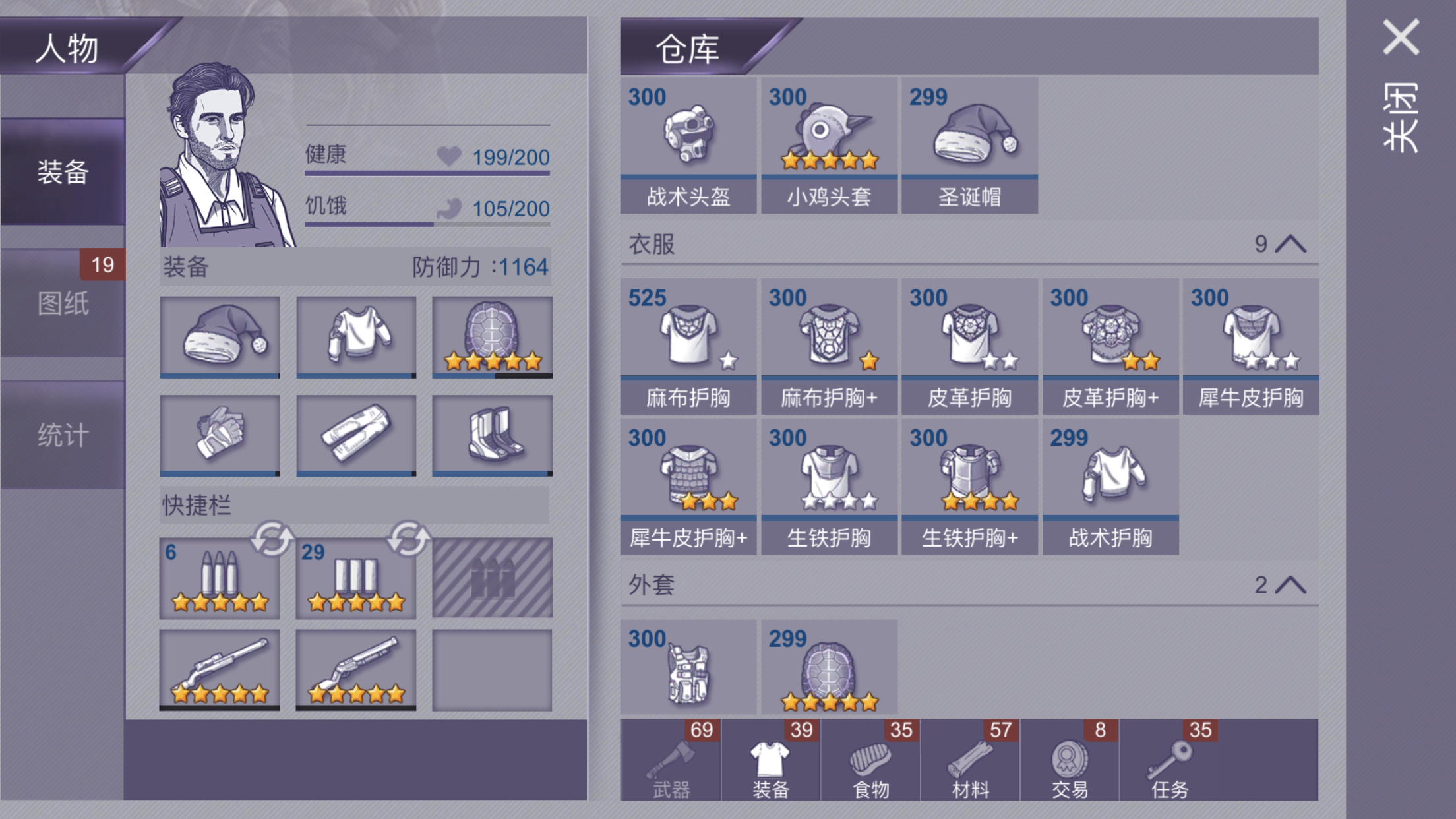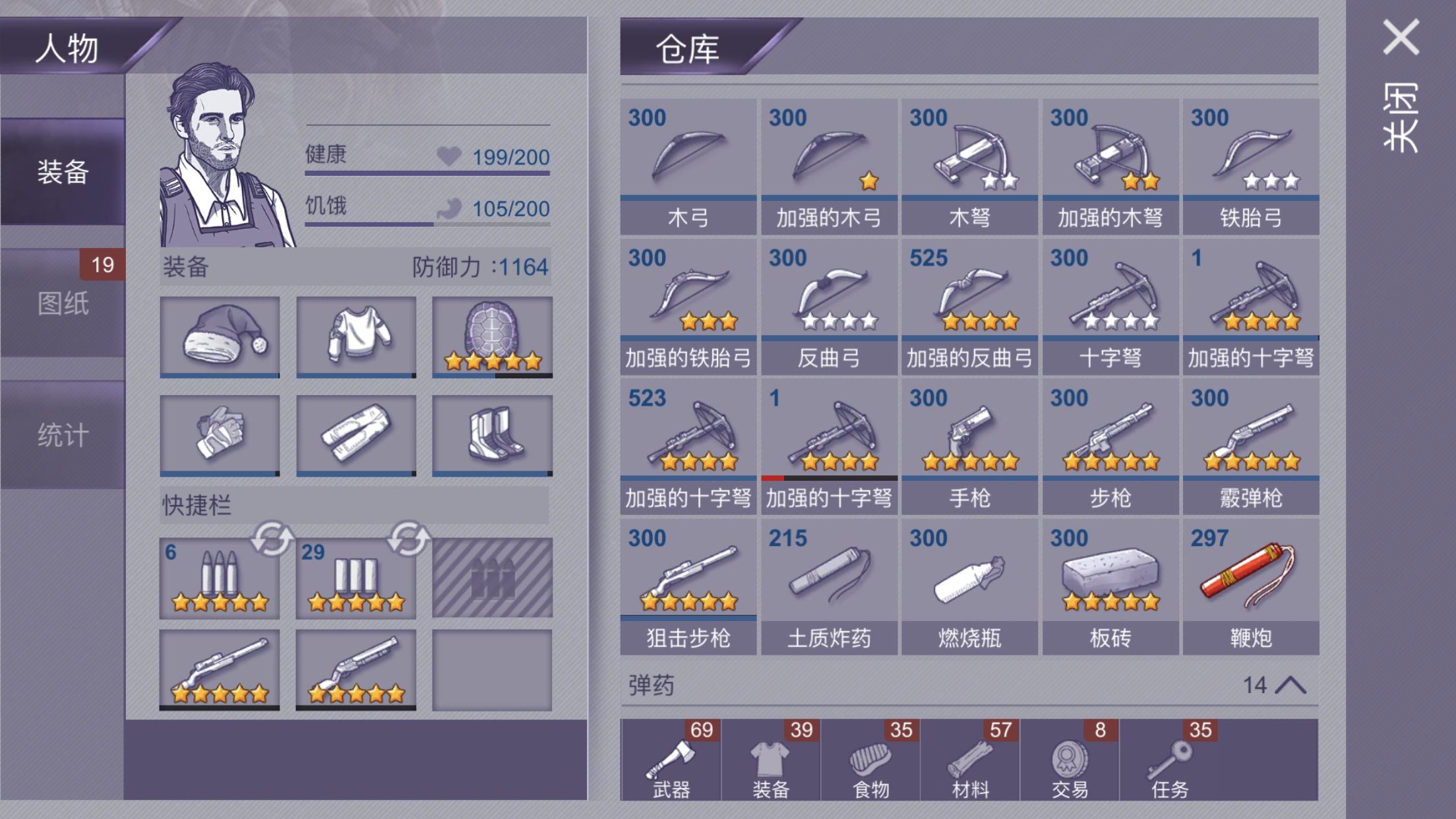 我玩这个游戏有3天了,终于游戏70天通关了,唉,怎么说呢,人挺麻的。下面是玩这款游戏总结的一些经验,也不知道对大家有没有帮助,没帮助也算了,留作纪念吧!以下内容不是攻略,是一些经验之谈,没有什么顺序,想到哪里写到哪里。一,关于氪金。 可以微氪一个6元的,把背包买了,就当是用6元买断了吧,不然10个格子游戏体验不是很好,差别挺大的,至于其他的,优先买4星武器,然后是买衣服的,接着3星武器,再是裤