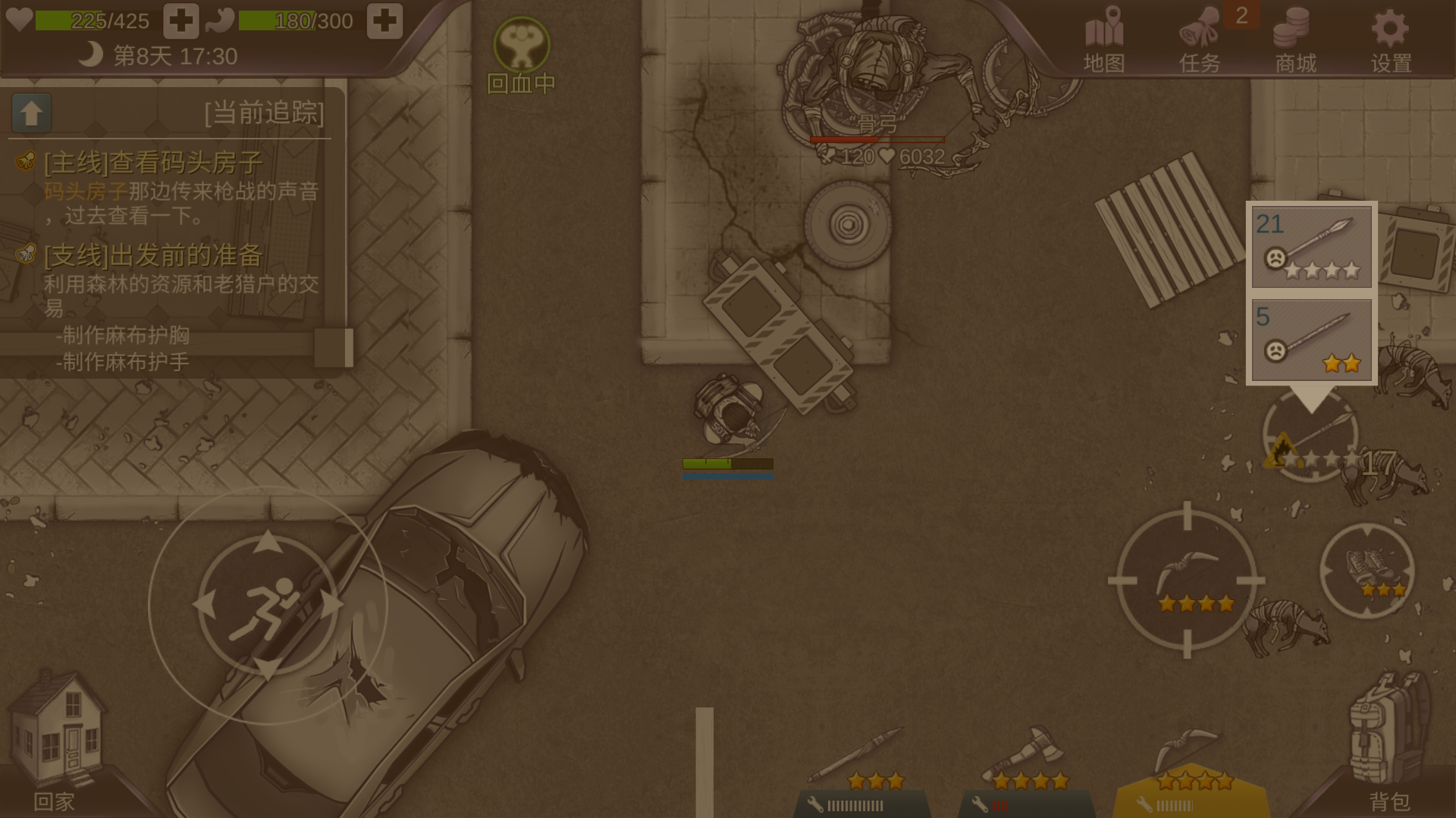 首先氪金上只买了背包和四星武器。没有的话会延长一定时间。一阶段:刷毒囊、草药,不用造衣服(除了鞋子),正常的话大概第二天打完屠夫(爆炸甲虫记得用弓补)二阶段:继续刷毒囊,有了石矛和二星鞋子开始刷箭猪出油脂造燃烧箭。燃烧箭和毒箭各二十支就可以去打山贼头目了。注意保持草药和油脂每两天必刷。大概第五天前打完。三阶段:过了山寨直接跑到野牛林打年兽(新年版本)一共森林20红包,森林深处20,野猪