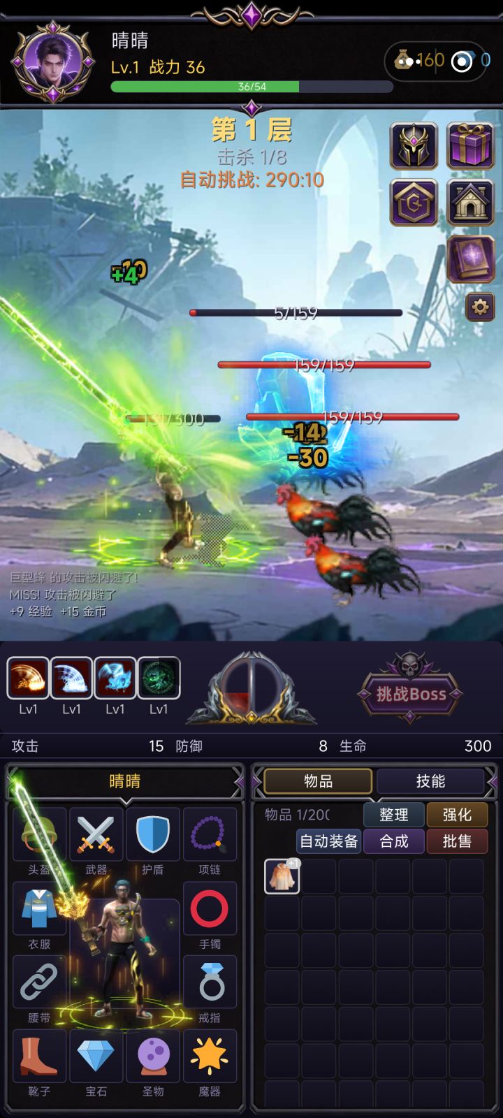游戏眼前一亮,内容新颖,丰富,开局抽技能直接挂机冲层,团队副本,装备合成,挂机成长