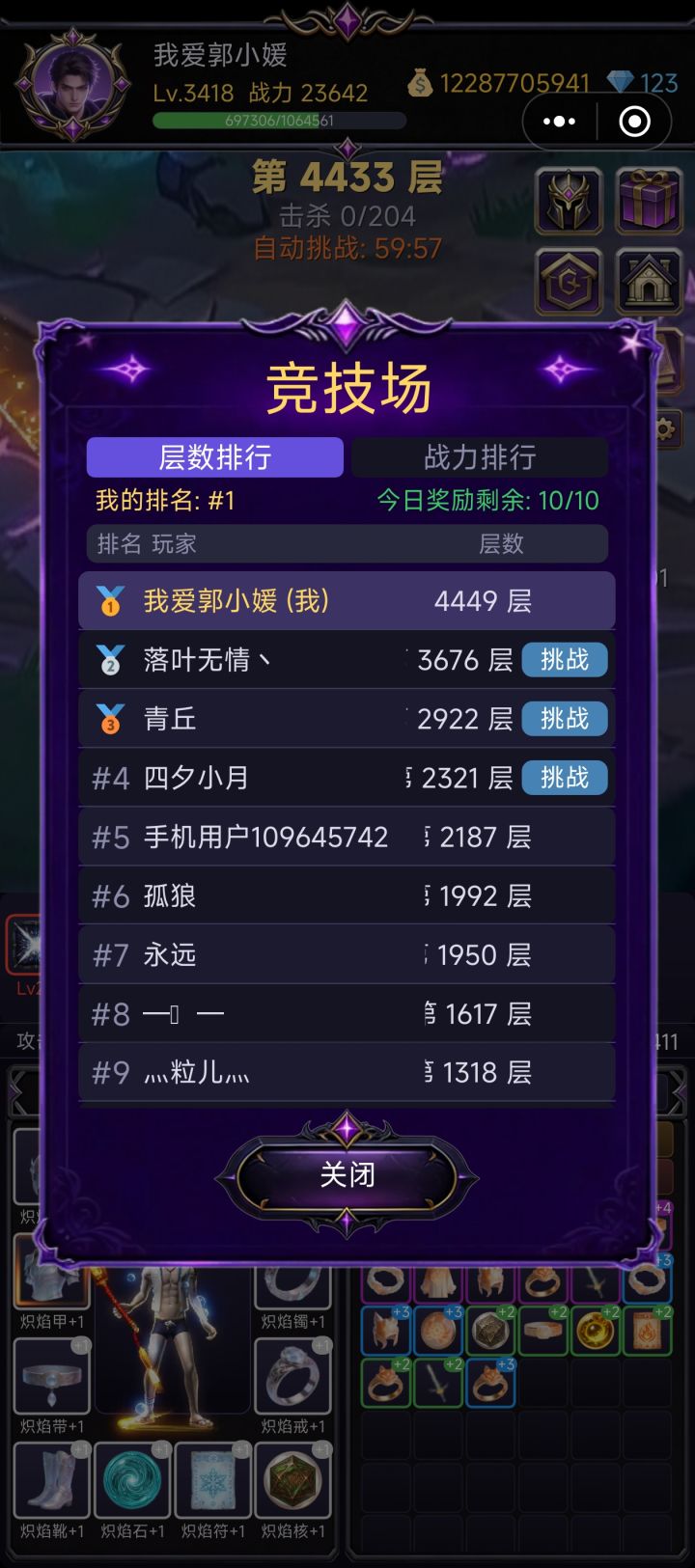 如图,离线推图太高了,关键没装备收益,装备跟不上只能被打降层
