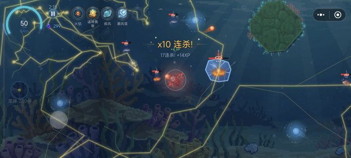 新功能:幽灵系列武器新增环绕攻击模式,弹体围绕玩家旋转武器选择界面新增「看广告换一批」(名字虽然这么叫,但还没有接入广告,可以放心点)和「长按查看详情」暂停菜单新增「个性化设置」,支持独立开关弹幕特效和敌人特效显示,画面更清爽,专为防卡顿设计新增摇杆设置,支持自由摇杆 / 左右翻转新增海平面视觉系统,水上水下视觉区分更明显氧气罐天赋扩展到20级,血量上限更高新增“精挑细选”天赋,可屏