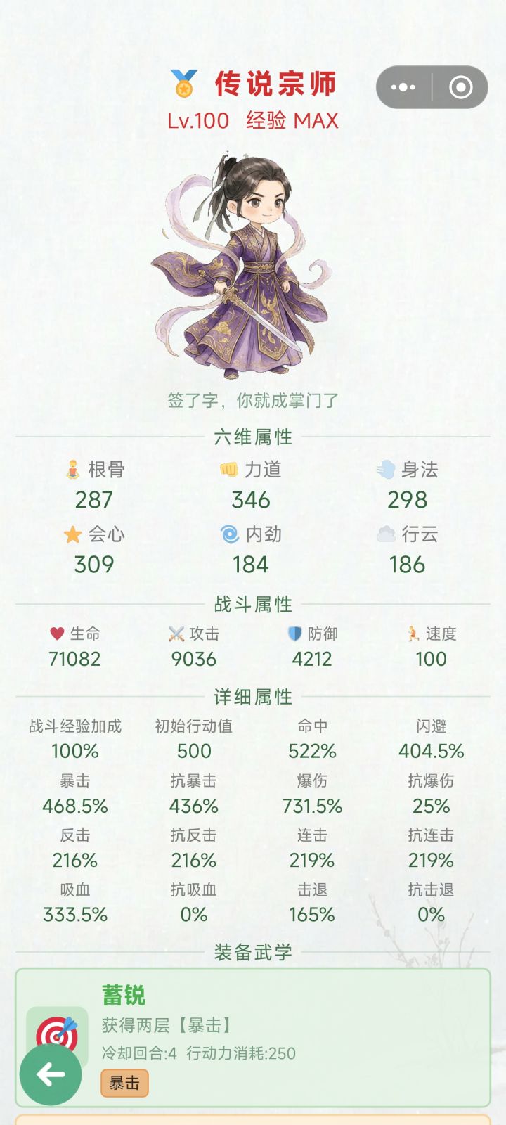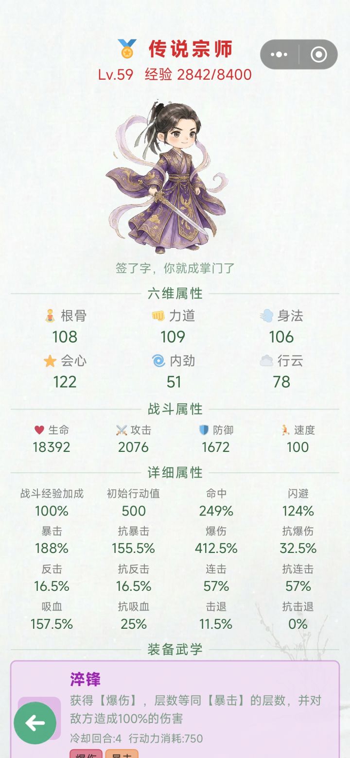 感谢老师点评!游戏刚刚上线,小毛病确实有点多,您提的问题都很深很深,我自己也在吭哧吭哧梳理中——局外养成做得太简单粗暴了,藏经阁问题很大……老实说,那是我后期燃尽小宇宙、随手糊的局外养成。现在回头看,嗯,槽点满满。神器也是,完全没考虑运气这回事。现在的情况是:抽中一个直接原地飞升,抽不中就在牢底坐穿。心法同理,但完全不看运气又没意思,这个方向我得好好琢磨琢磨。玩家和弟子的属性……弟子做得太勉强了,这个也要认真想想。再次感谢!这是我第一次做独立向游戏,就是Steam上卖20块左右的买断制小东西。经验不够,有时候还是偷懒,顺手拿挂机手游的老套路来用了。上线后收到好多意见,我还在慢慢的学习吸收中……再次感谢深度游戏