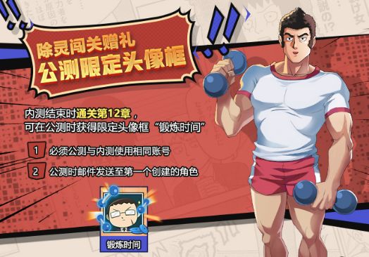 福利一:公测结束时通关12章,可在公测时获得限定头像框“锻炼时间”注意事项:1、 必须使用和公测相同账号2、 公测时邮件发送至第一个创建的角色福利二:截图扫描图中二维码或微信搜索“路人超能100手游”并关注,回复“新人礼包”即可获得微信官方专属礼包一份福利三:内测福利活动(入口游戏内左侧-活动入口-福利中心) 1、 萌新福利:每日发放300红钻(第二天可以购买必出SSR礼包)2、