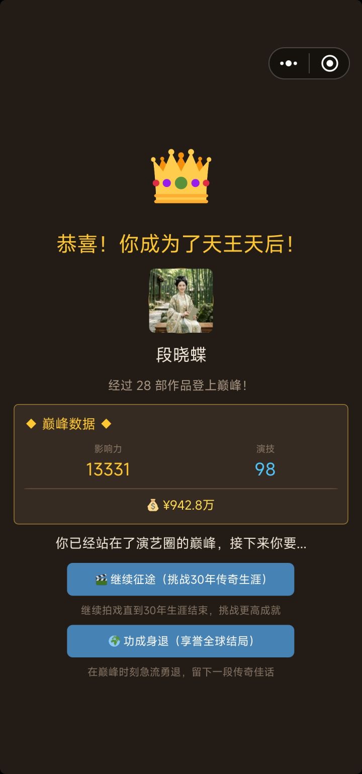 3,和npc的互动增强。不行就ai跑下,可以贴和npc性格的个性化发言,然后可以主动邀约出演,现有的邀请好友好像没生效,然后也可以增加绯闻或者cp或者是结婚