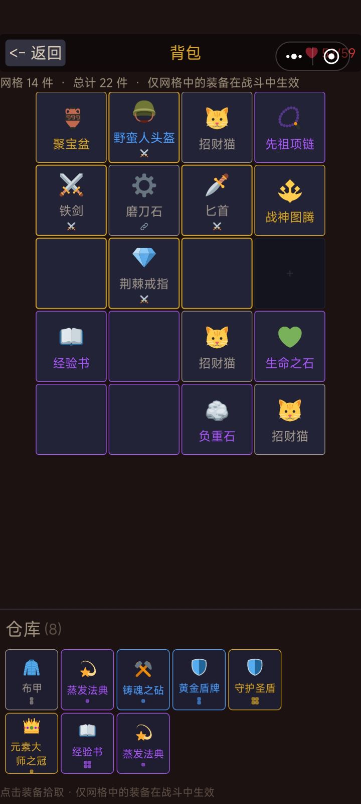 随便玩了会,卡牌ui交互希望来点动画,然后背包装备物品那个操作逻辑感觉有点乱,不过游戏才刚上线没几天,慢慢等作者更新吧