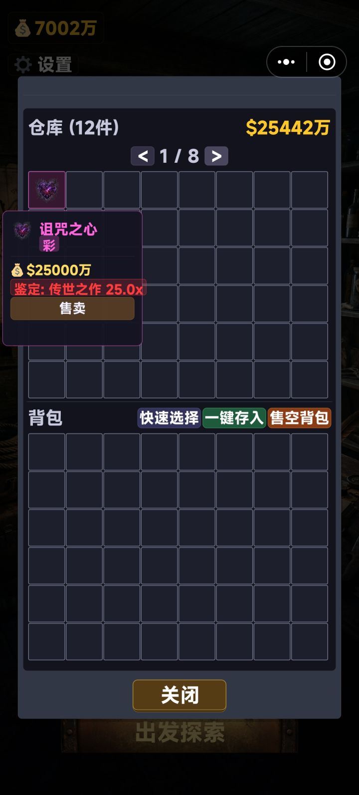 2.仓库物品不能更改位置,且有时会出现误售相同物品的情况。鉴定20×的物品和0.85×的同一物品仓库在一块,卖0.85×把20×卖了真的离谱