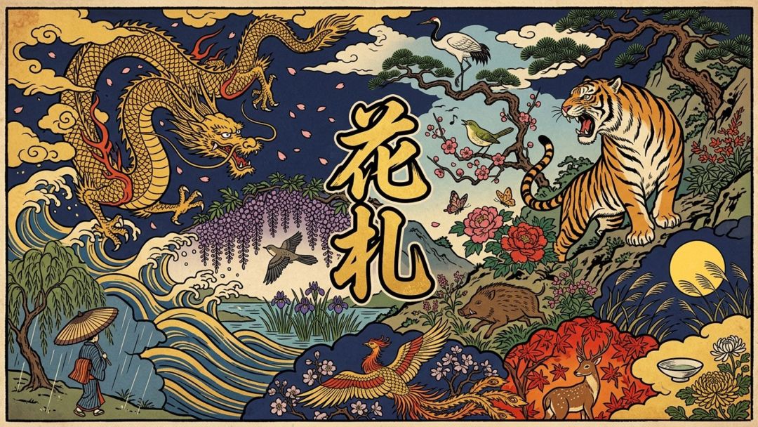 花札,又称花牌、花斗、花札牌、花札歌留多、花花世……,是起源于日本安土桃山时代的传统纸牌游戏,江户后期定型并沿用至今。该纸牌共48张,分为12个月份,每月4张牌面采用浮世绘风格图案,融合季节元素与传统文化象征,如松鹤、樱花、芒等对应各月民俗。核心玩法为两人对战"来来",通过收集同月牌组合"役"得分,规则存在地区差异性。牌型分为光牌、种牌、短牌、小牌四类,包含五光、四光、猪鹿蝶等10余种组合。