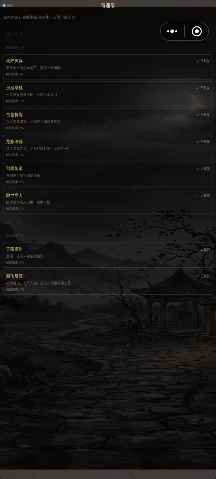 第一删角色没用,我第一个档进的武当,后面删档后还是直接进的武当。第二,战斗没有普攻,只有技能,如果没有内力了就会直接卡在战斗界面。第三,悟性所谓的经验加成完全没吊用,开局30悟性打怪是那些经验,5点悟性打怪还就是那点经验,我还以为是能修炼呢。不如开局加在战斗属性上的,加悟性开局一个怪都打不过,只能探索地图捡装备才行。第四,天赋就刀,盾,内功三项,分别加攻,血,属性。但是武功里最多的还是各种剑法,就很割裂好吧,完全一点带入的感觉没有。踏马的,现在连半成品都能上线了吗?