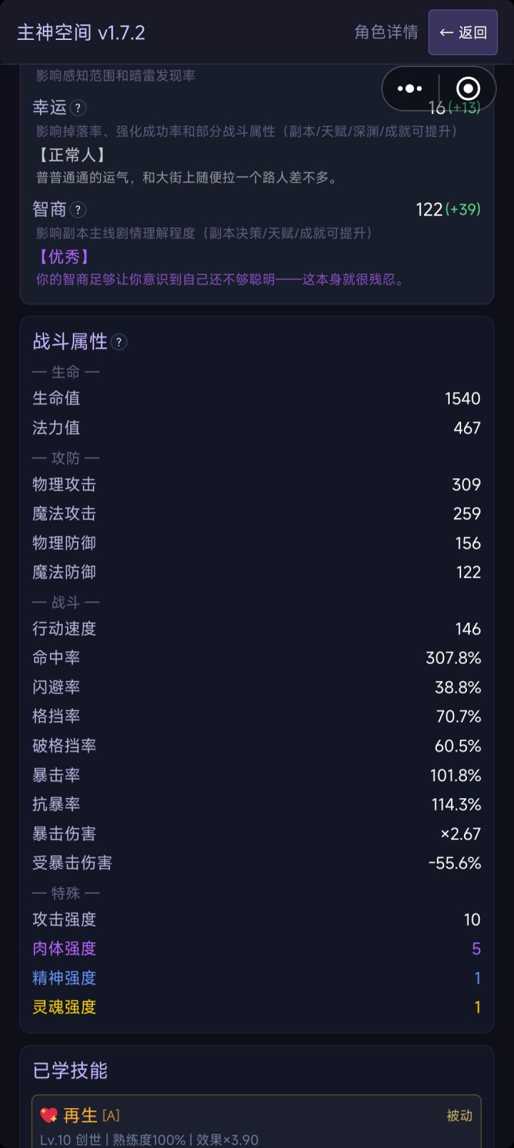 个人提议全X通关:“完美的时间线”:幸运+2,智商+2,你此时间线全属性增加(上一个时间线的探索度/100)%,深渊算作一条独立时间线