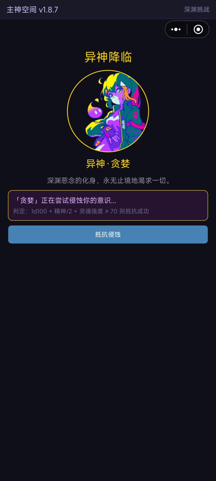 4.深渊尤其邪神对剧情的影响放大,加一些深渊同款roll点判定,这样打完五阶莫名其妙就要面对美少女邪神的违和感会减弱,深渊加几只对应邪神使徒机制怪或者邪神本身也不错