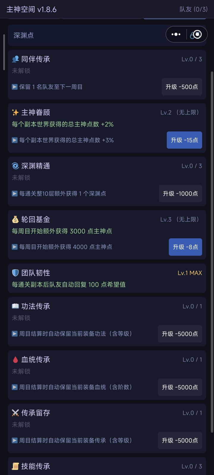 一次轮回可以60个深渊点,打够500点深渊点要打9次,想直接攒够1000点升深渊点的话就要打17次,17*60=1020,但是我还要打副本,打副本的时间至少半小时才能打完,这样磨磨唧唧就要一个小时一把,17个小时才能打上1000,得到一把轮回120点深渊点。这样算的话还是挺肝的。作者大大教教我