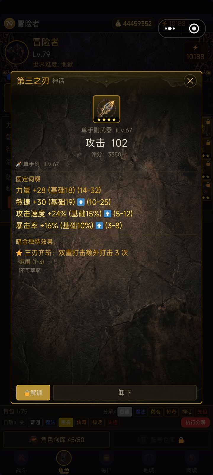 装备过滤器攻略在哪里打开?战斗界面 → 右下角 ⚙️ 设置 → 点击 ⚔️ 装备过滤器快速上手(推荐新手)打开过滤器 → 点击 「添加预设」 → 「⭐ 一键添加推荐组合」打开 「自动过滤」 开关完事了,挂机去吧分解所有白装、蓝装保留带暴击率/暴击伤害/攻速的稀有装分解没用的稀有装(无铭文+无好词缀)传奇、神话全部保留进阶玩法:自定义规则点击 「+ 新建规则」 可以自由组合条件: