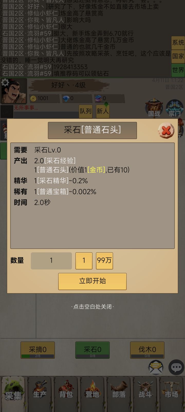 6、进游戏选择采集,然后打关卡,三关就可以进入交易和商城,进入商城礼包界面还有几万免费钻石领,钻石先不用,先升级悬赏时间缩短,氪佬的话其他不要升,不是氪佬就开采交易队列增加一个就好了,钻石一半用于购买收藏,别一键购买,留一半等你熟悉了游戏再用钻石,