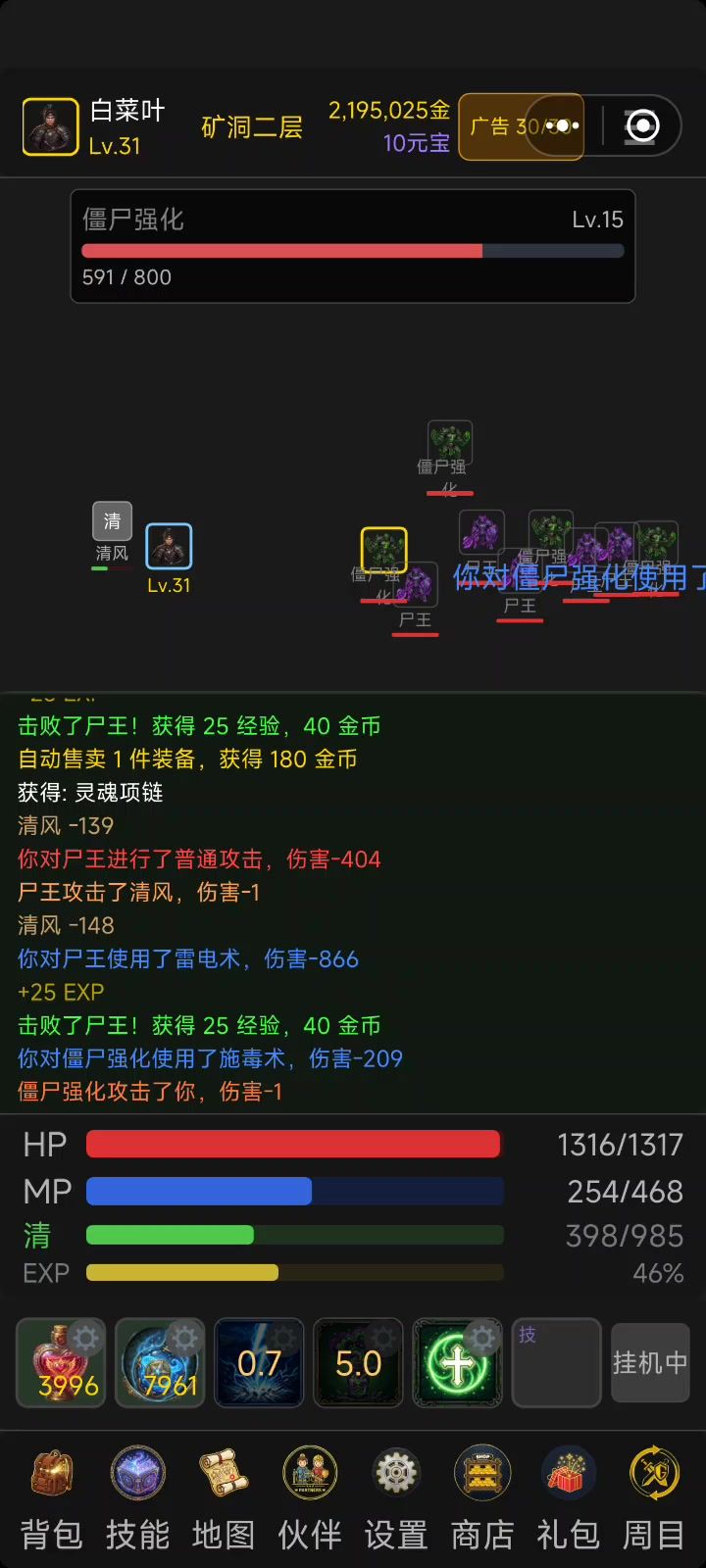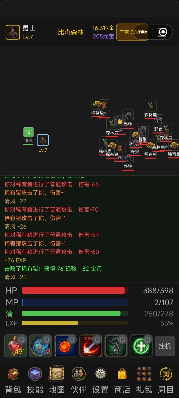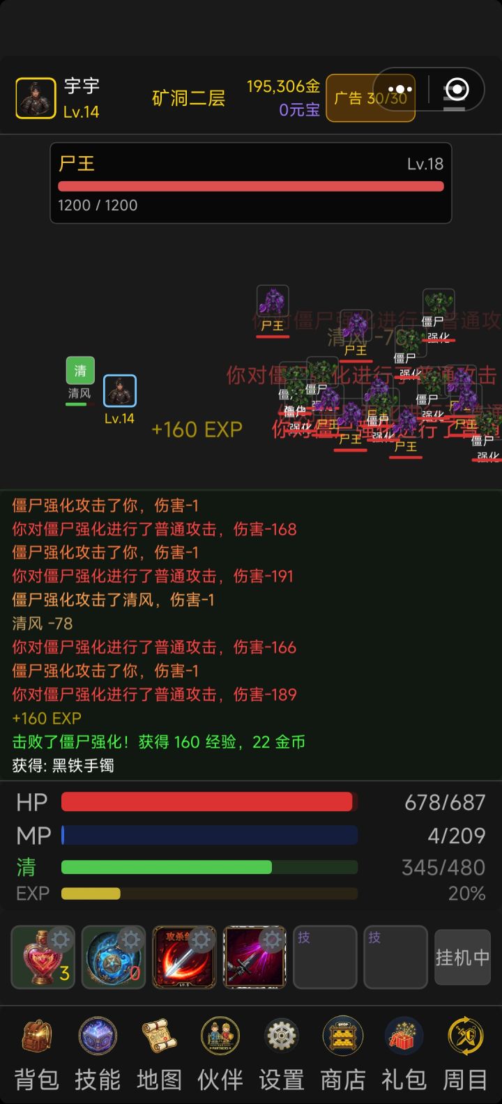不挂机的情况下,没法攻击,加个自动打怪的代码上去或者加个普通攻击键