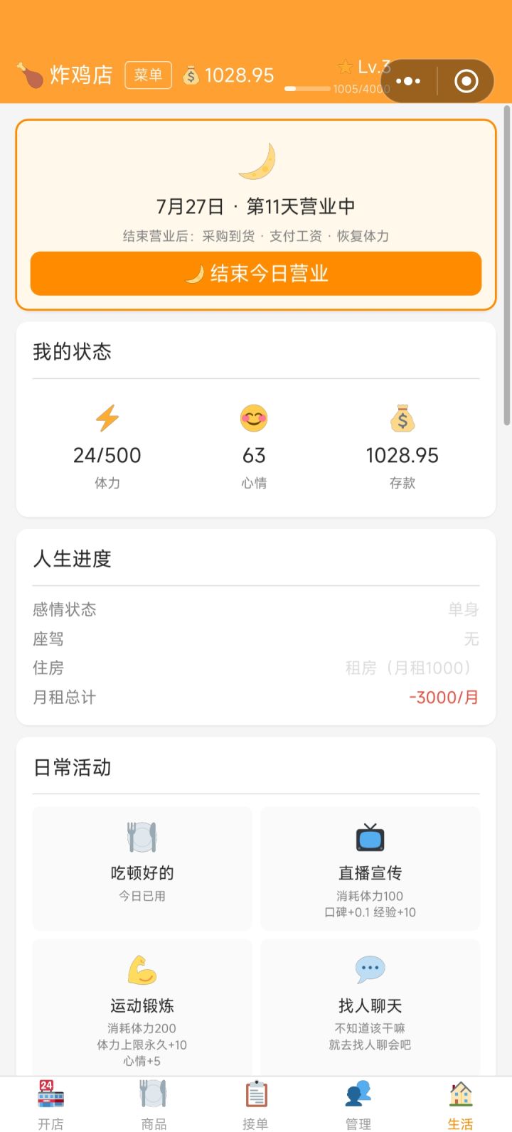 口碑到底怎么提升快呢?100体力才加0.2 每天扣的都挺多的了 #真实外卖模拟器 #噗噜噜实验室 @游戏懂哥