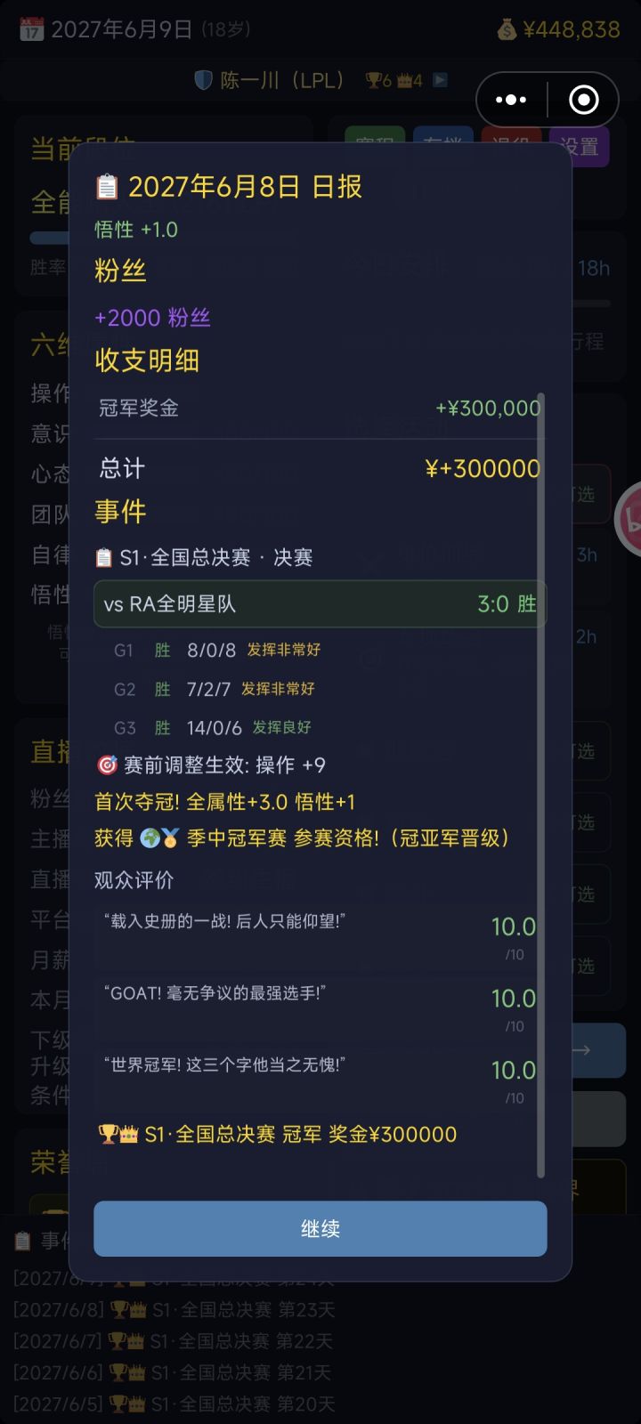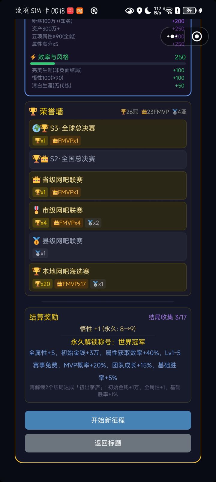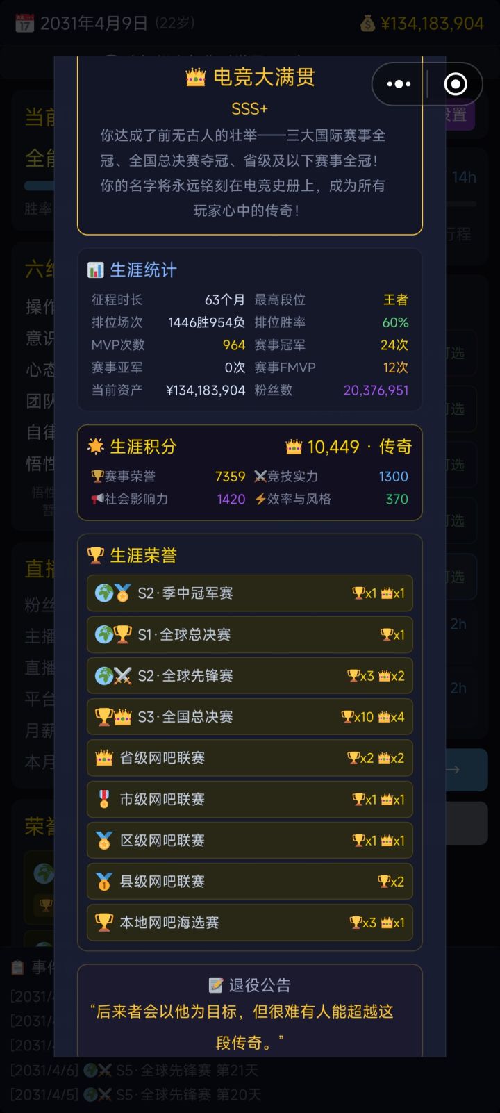 目前的内容量:109个随机/选择事件、20+个结局、7级赛事体系、完整的直播签约系统、里程碑称号收集,还有5个金色稀有事件等你触发。可玩性很高,但要全结局收集……我自己测试都还没集齐。