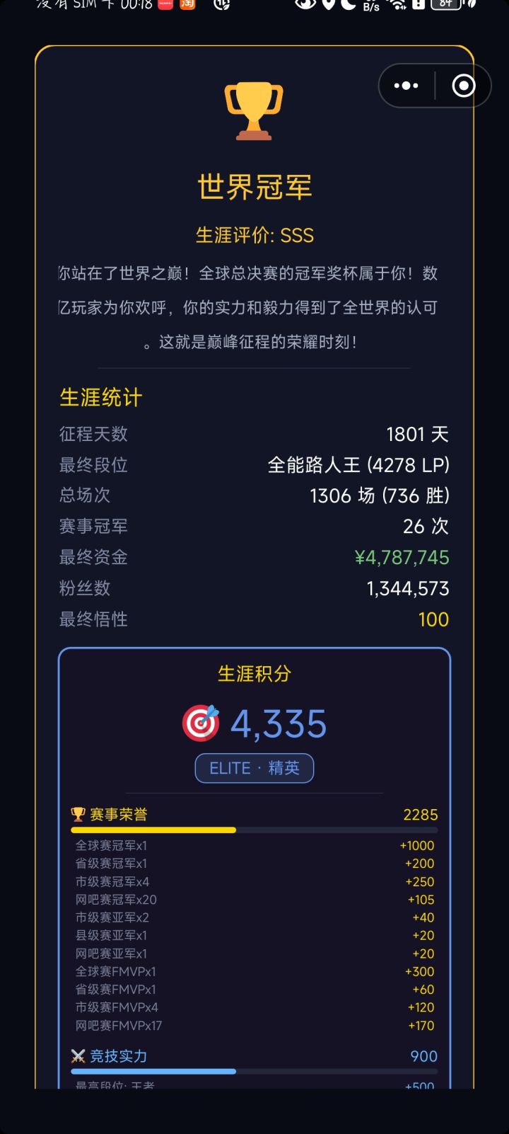 说实话做这个游戏的初衷就是想让大家体验一把"从网吧少年到世界冠军"的热血感觉,如果你玩的时候有那么一瞬间觉得燃了,那我这几百个小时就没白花。