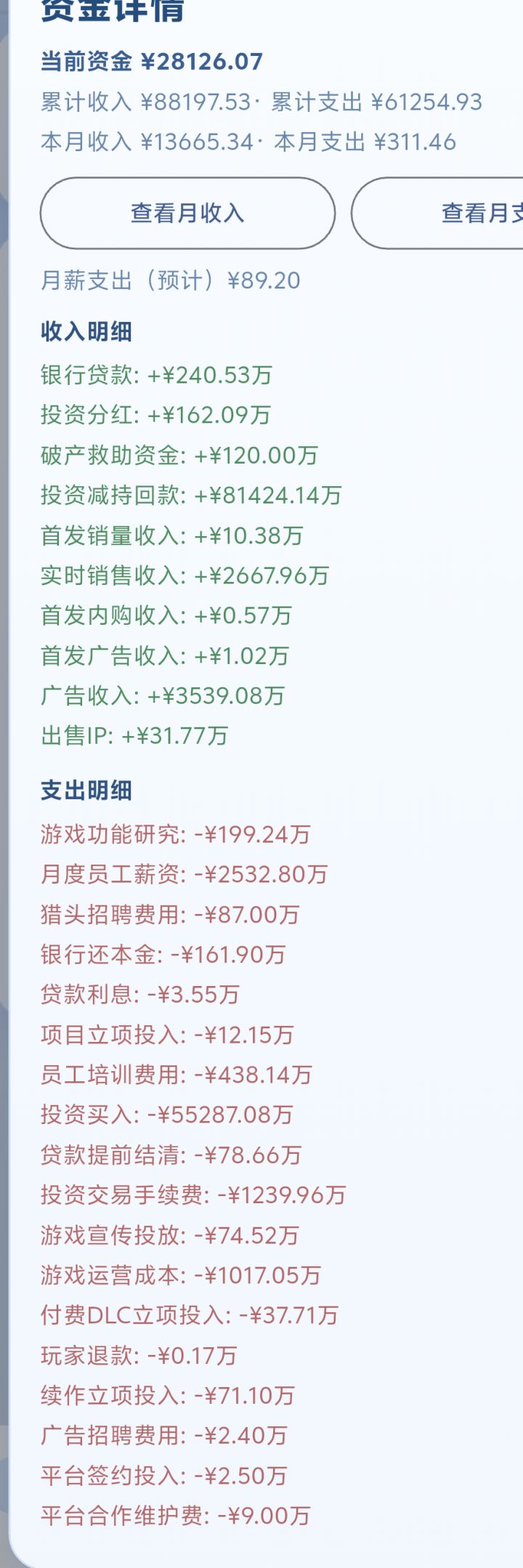 - “成长反馈太爽了!” 看着公司资金从8万涨到百万,员工技能从27→70+,游戏从“需求拆解2%”到“联调打磨94%”,再到平台合作解锁、研发中心技术突破……每一步成长都有“肉眼可见的成就感”,仿佛真的把一个小工作室做成了行业巨头。