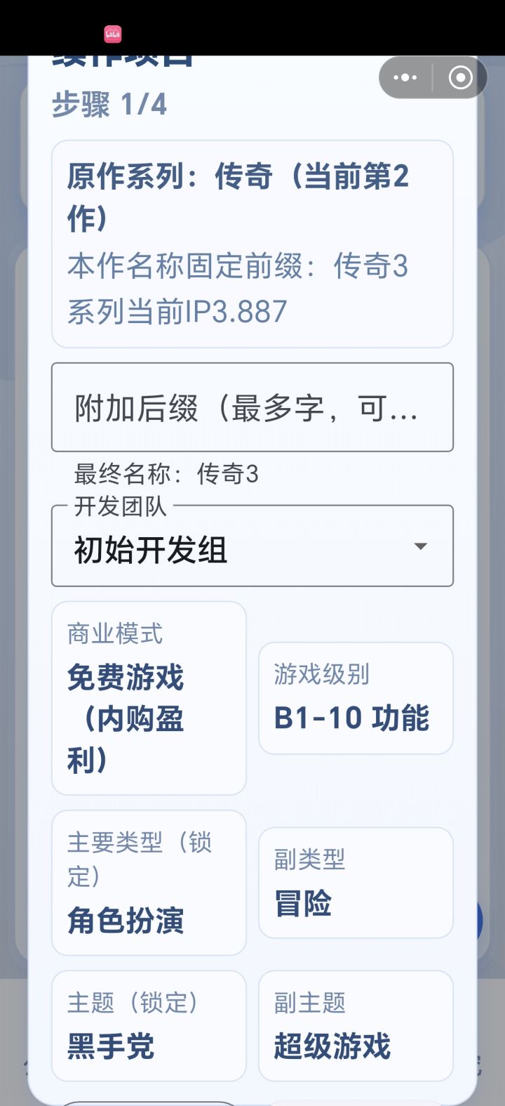 相同团队(全员最高数值:1C初始程序;6S程序;7S设计/美术/音效) 相同质量(二十二/二十四 少了0.1) 相同热度(发布的时候都是0) 相同时间(发布了180天) 相同游戏类型(B1-10功能:只选了一个任务追踪功能)(策略/冒险/游戏公司/黑客) 相同平台(网页 合作等级:深度) 商业模式: 十四:单机 十五:网络(新游戏项目选了相同的1个) 十六:免费(新游戏项目选了相