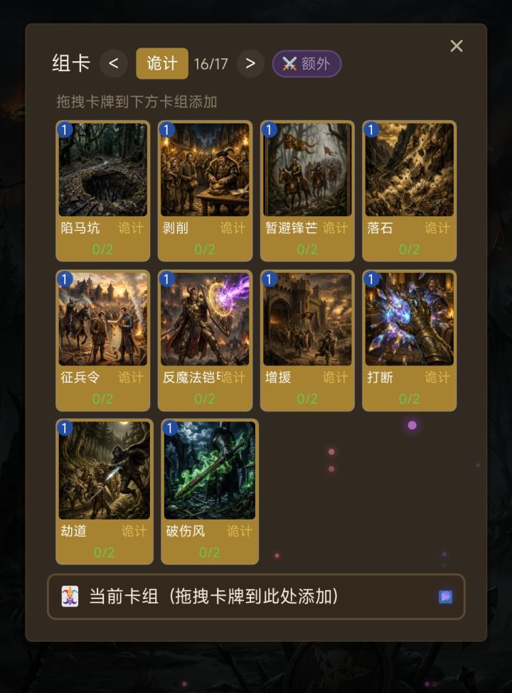 四月二十三日23:00更新内容:①规则更改:1.后手初始在中心格拥有1/4的守护石像 2.初始召唤区的沦陷判定被更改到己方回合结束后3.手牌上限上调至6②额外卡组(在组卡界面最后一页)功能开放额外卡组独立于主卡组,上限为6张。目前包含装备牌与地形牌两个类别。额外卡组中的卡支付费用即可随时使用【地形牌】:可配置于己方初始召唤区与己方生物占据的区域中,每个区域至多配置一张。每回合至多使用一张