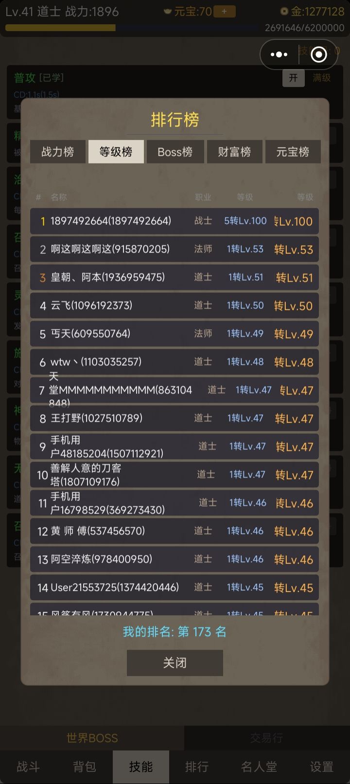 挺不错的传奇类型 转身可以带一个其他职业的技能 玩法多样 挺不错 升级难度不小