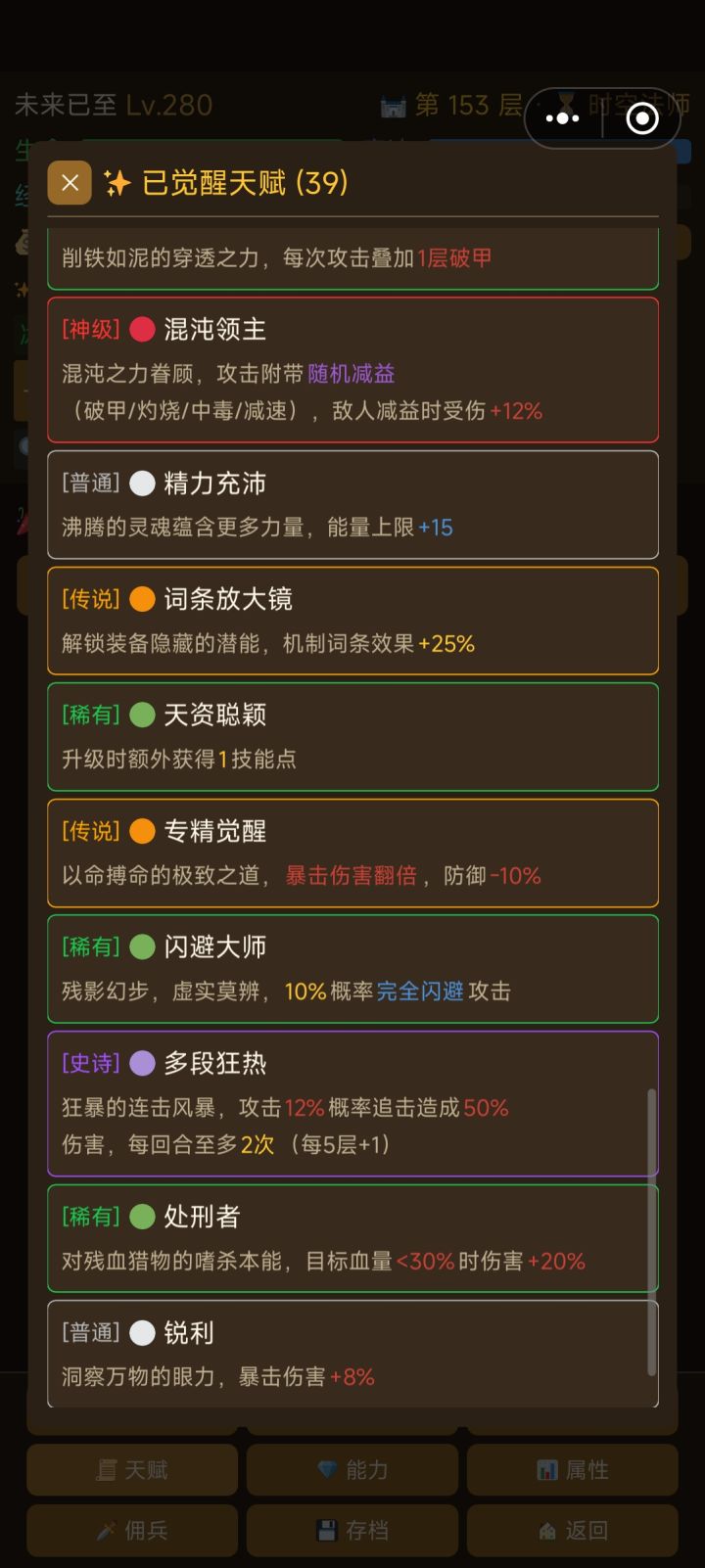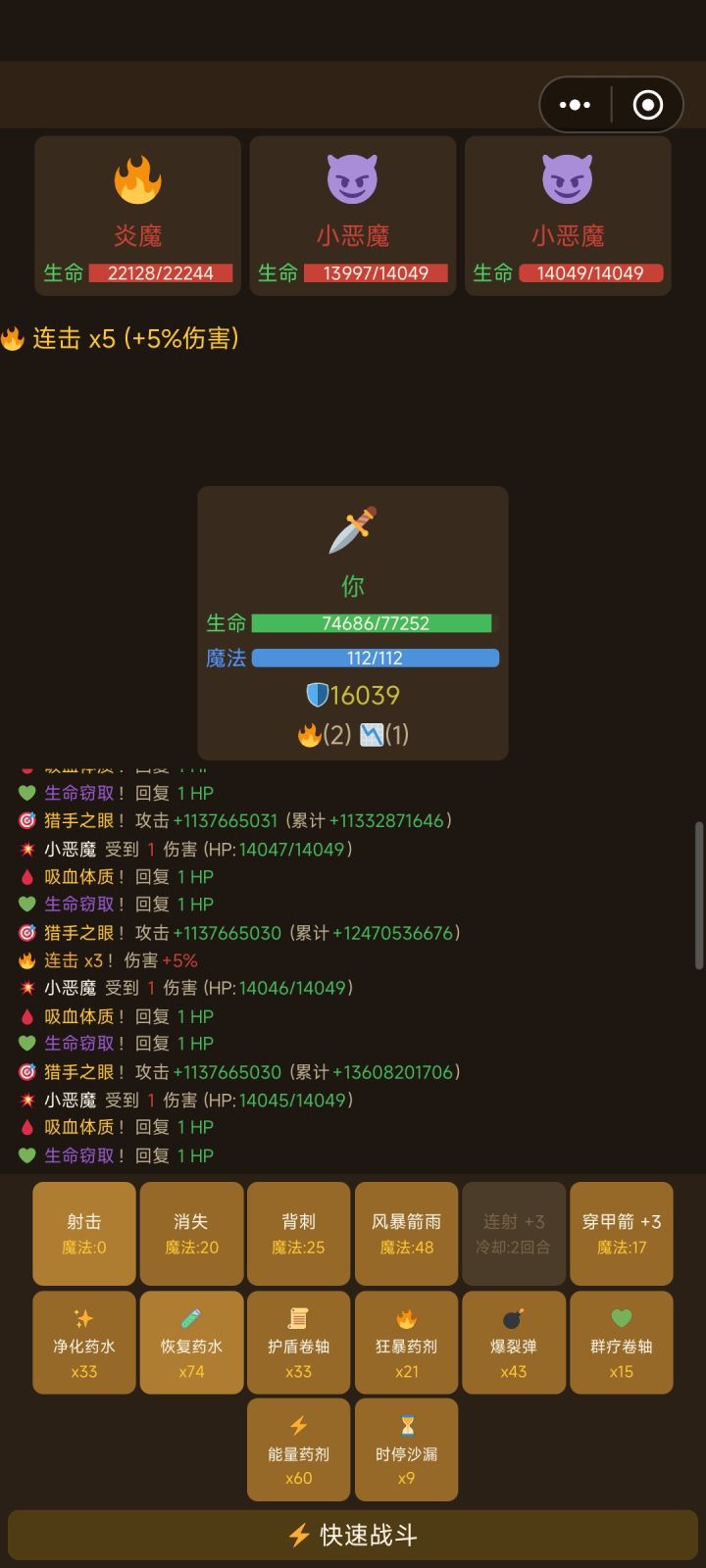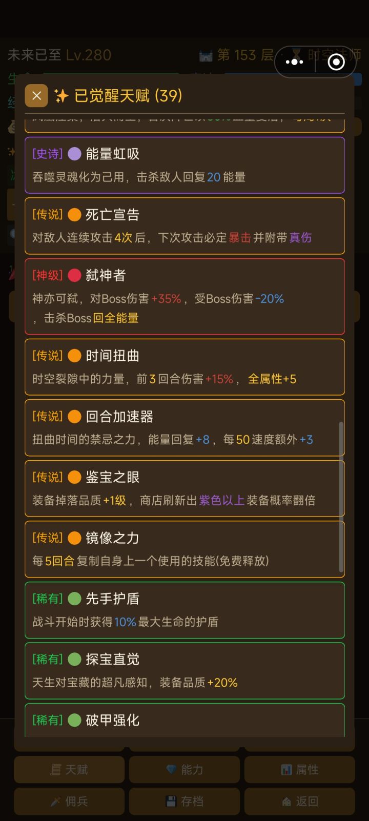 有打到200多层的老哥交流下嘛。你们属性咋样,是200多层的怪就是这样的还是变量被我打穿了。我这个应该是代码写错了。1。03倍一直叠加了,天赋叠加起combo了。就玩了几十层。然后就开始一直跳关了。有点上头。本来还想打到502睡觉的