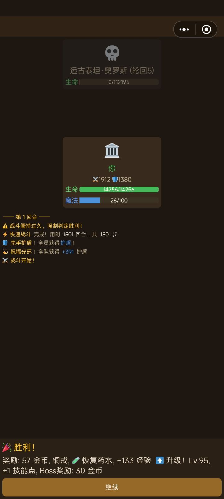 玩个牧师。。队友每次都死。。浪费钱。只能不要了全靠跳过打boss。。本来以为很快就死了。。结果打完都是满血。。然后变成点点点游戏了。。。所以这游戏没有上限吗。就硬刷