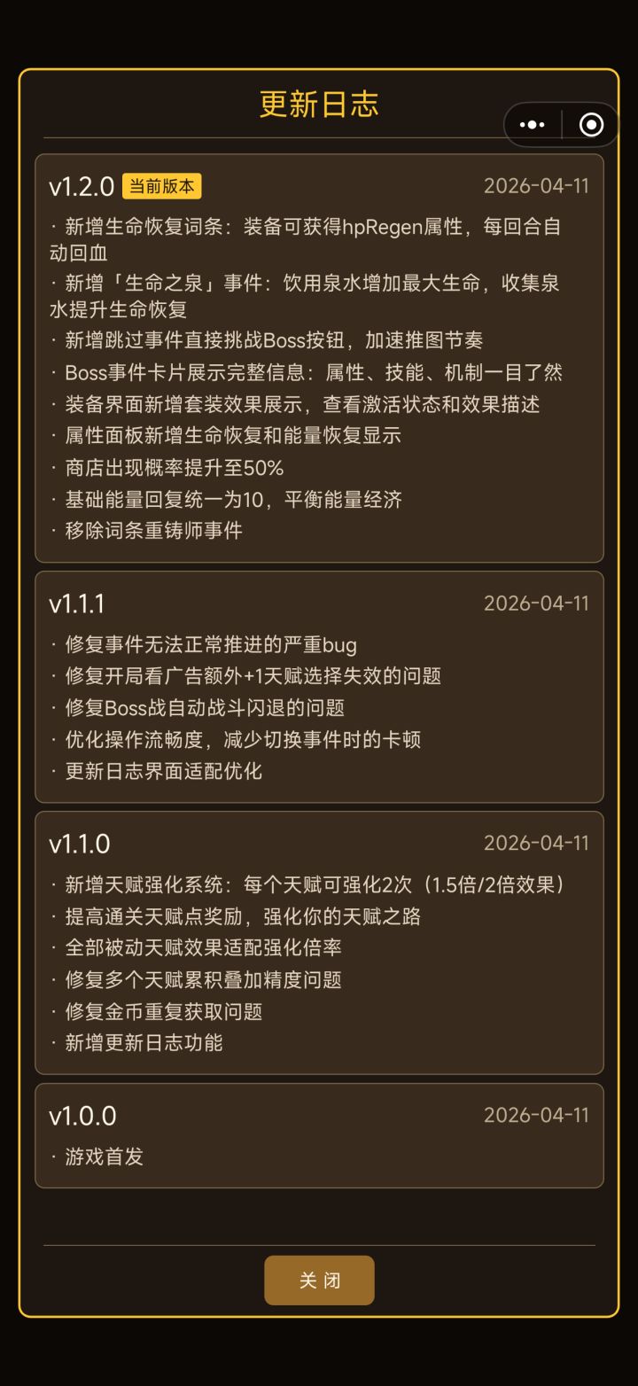 更新日志1.2.0 游戏体验优化