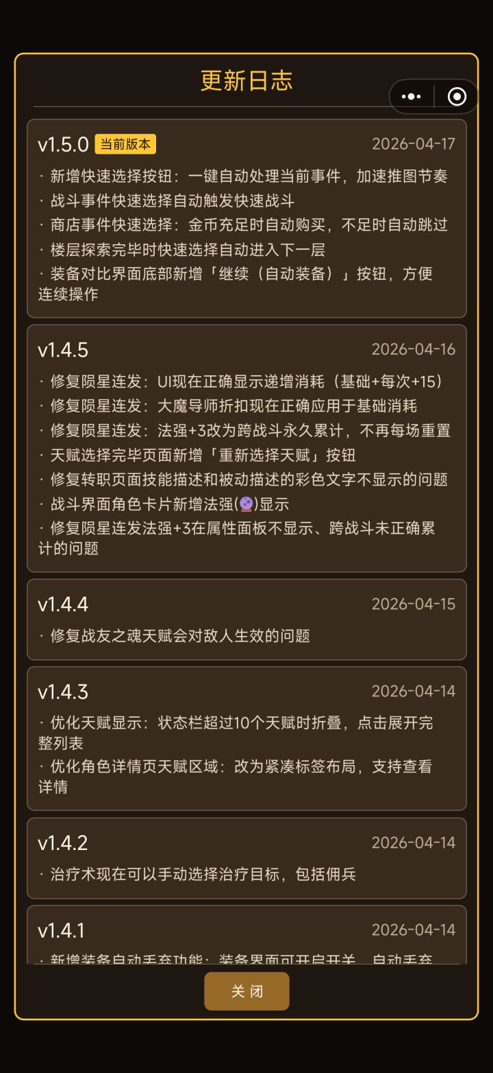 更新日志1.5.0快速选择 纵享丝滑 流畅爬塔