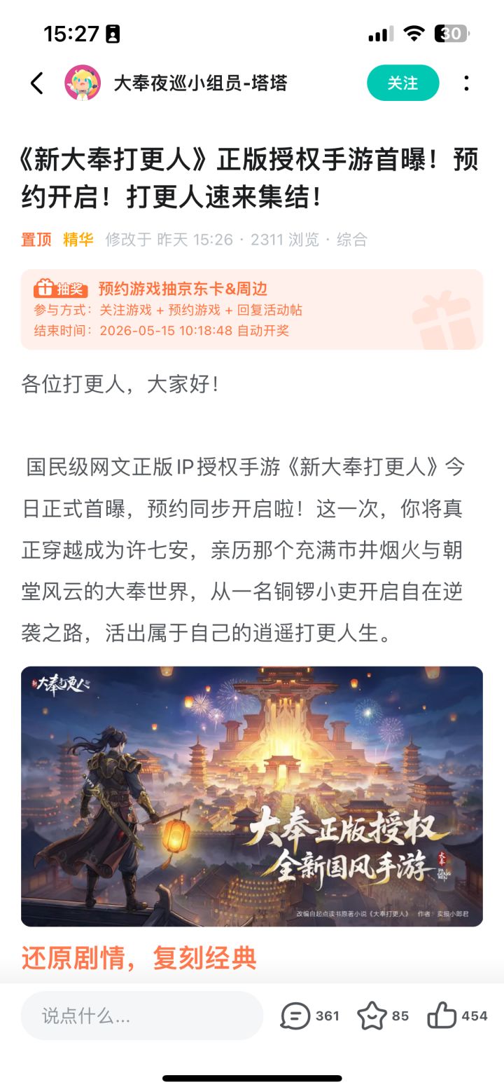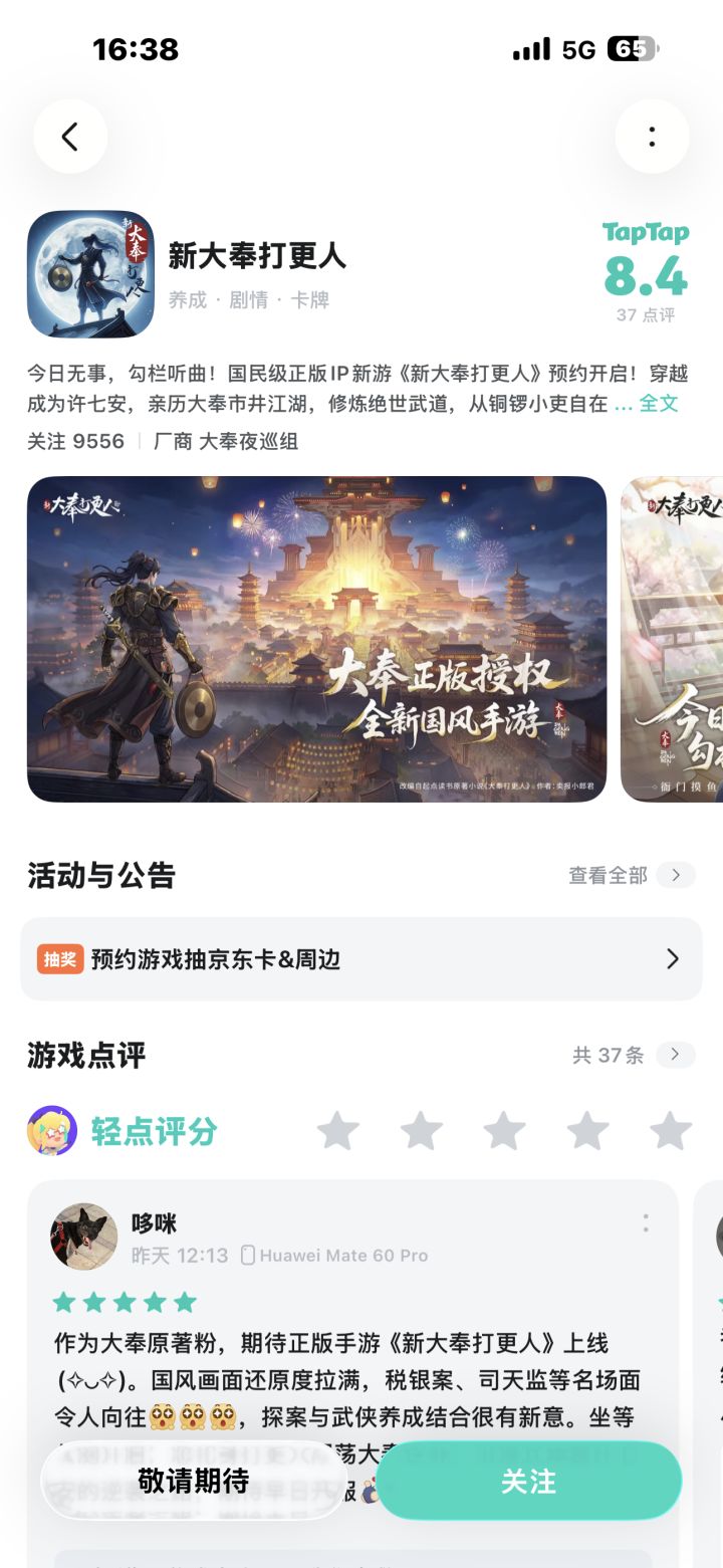 作为原著粉,看到税银案、司天监等名场面有望还原,还是值得期待的。探案加武侠养成的玩法想法不错,就看落地质量。希望别光卖情怀,真正把大奉世界的悬疑感和市井气做出来,到时一定大卖安利。