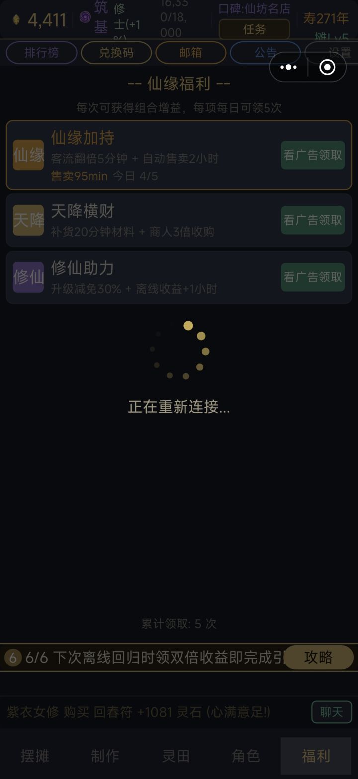 看完广告回来就是重新连接 游戏重新登录 奖励没给