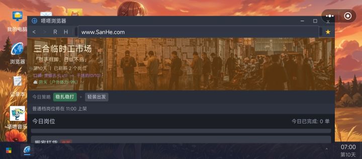 电脑系统是另一个亮点。它模拟了一个简易桌面环境,内含邮件(剧情推进)、钱包(财务管理)、浏览器(求职购物)、新闻(江城日报,世界观构建)等应用。这不只是一个功能入口的集合,而是在氛围上完成了一种"独自坐在出租屋电脑前"的沉浸感。