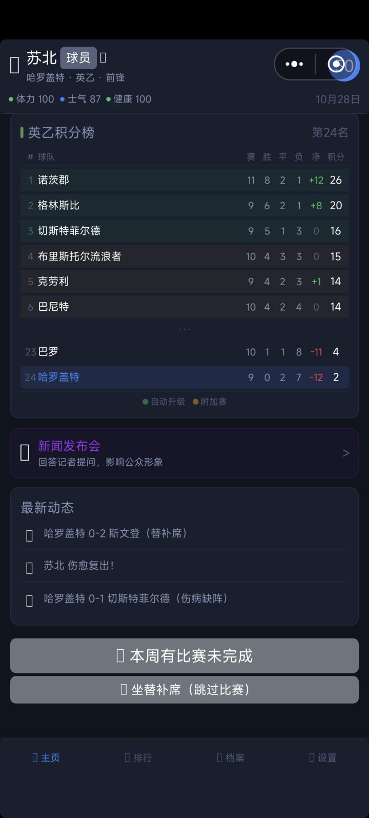 修复联赛一周要踢3场,才能到下一周的bug改成比赛结束直接到下一周,主角可以先训练在去比赛,避免浪费一周训练属性。