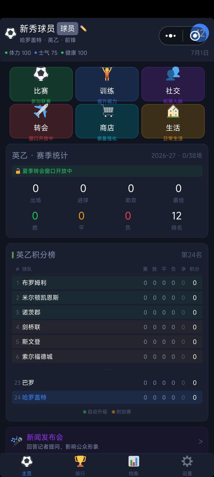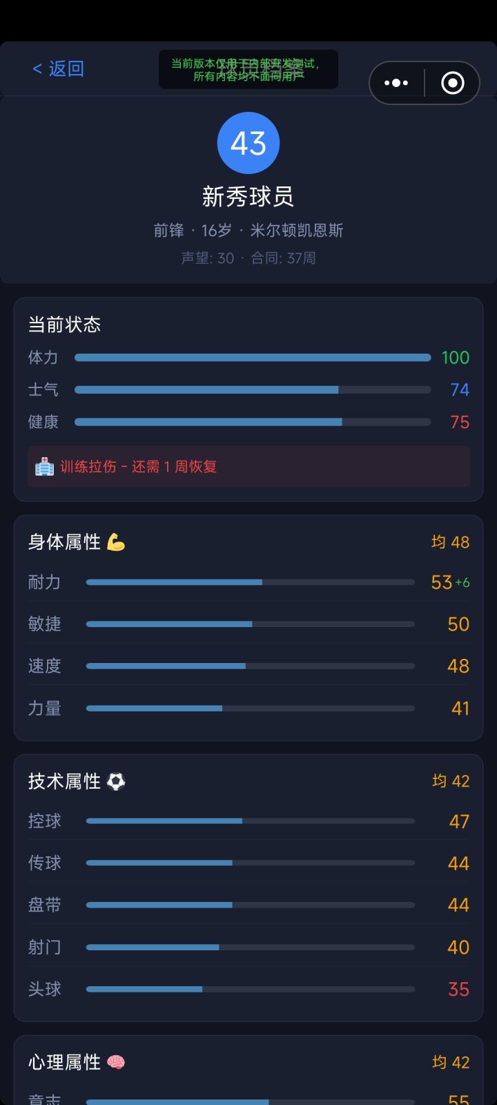 更新了自主转会能力对比赛的影响部分功能黑屏如有问题,大退重进即可。