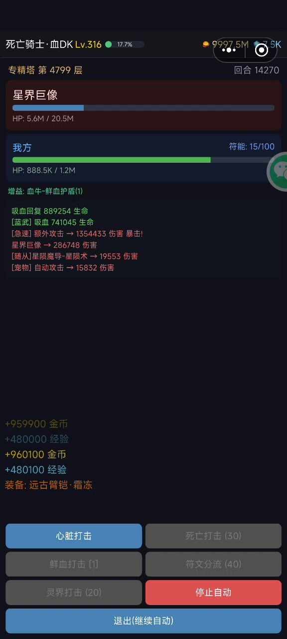 玩了一天,中期运气好,来了个传说级输出佣兵魔导,直接过渡到出装备栏下面那个蓝色的专属,专属一出,数值直接爆炸了,后期一路秒秒秒,总的来说还算是不错的游戏了(除了玩一会儿就会开始存档失败,掉档以外)