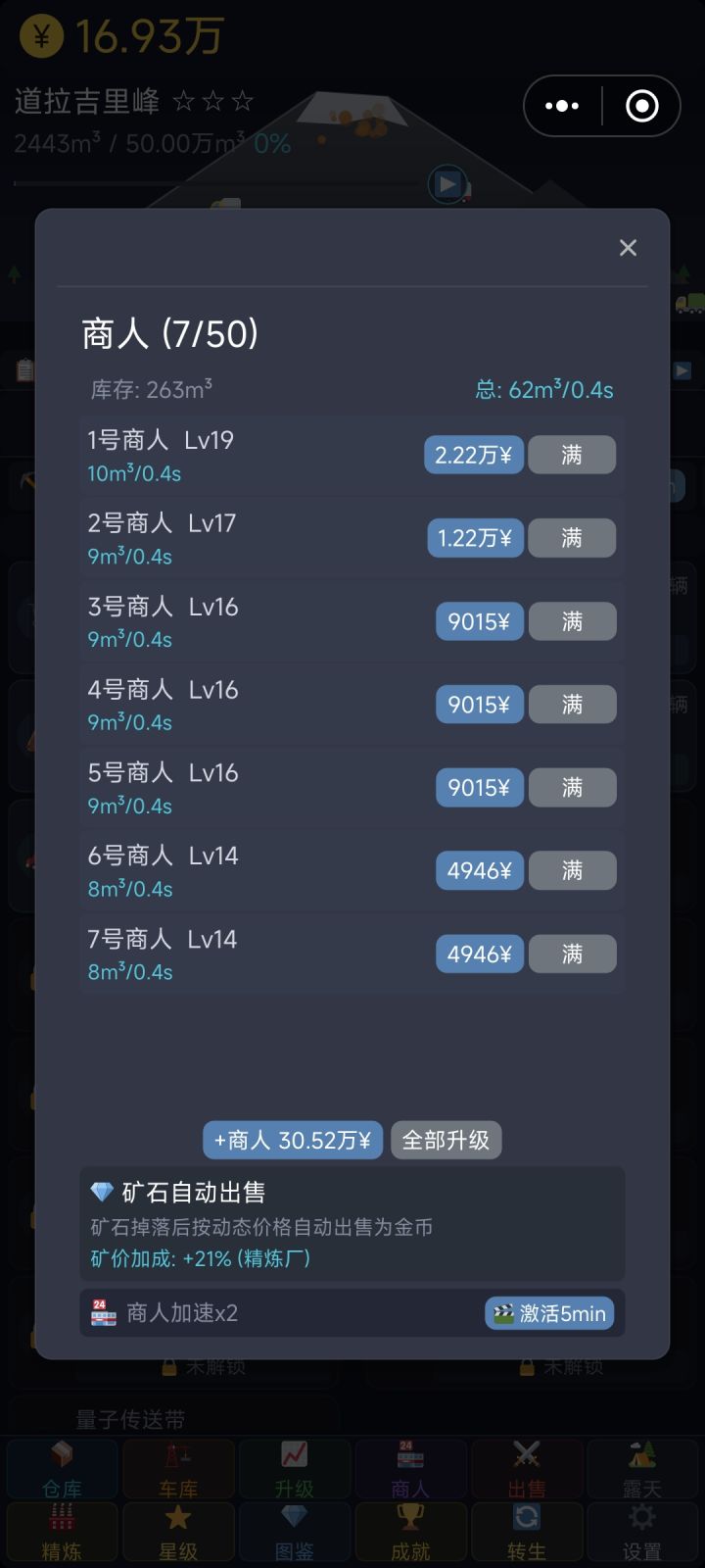 建议直接移除任务里的商人升级和载具升级了,全自动获得金币这一块