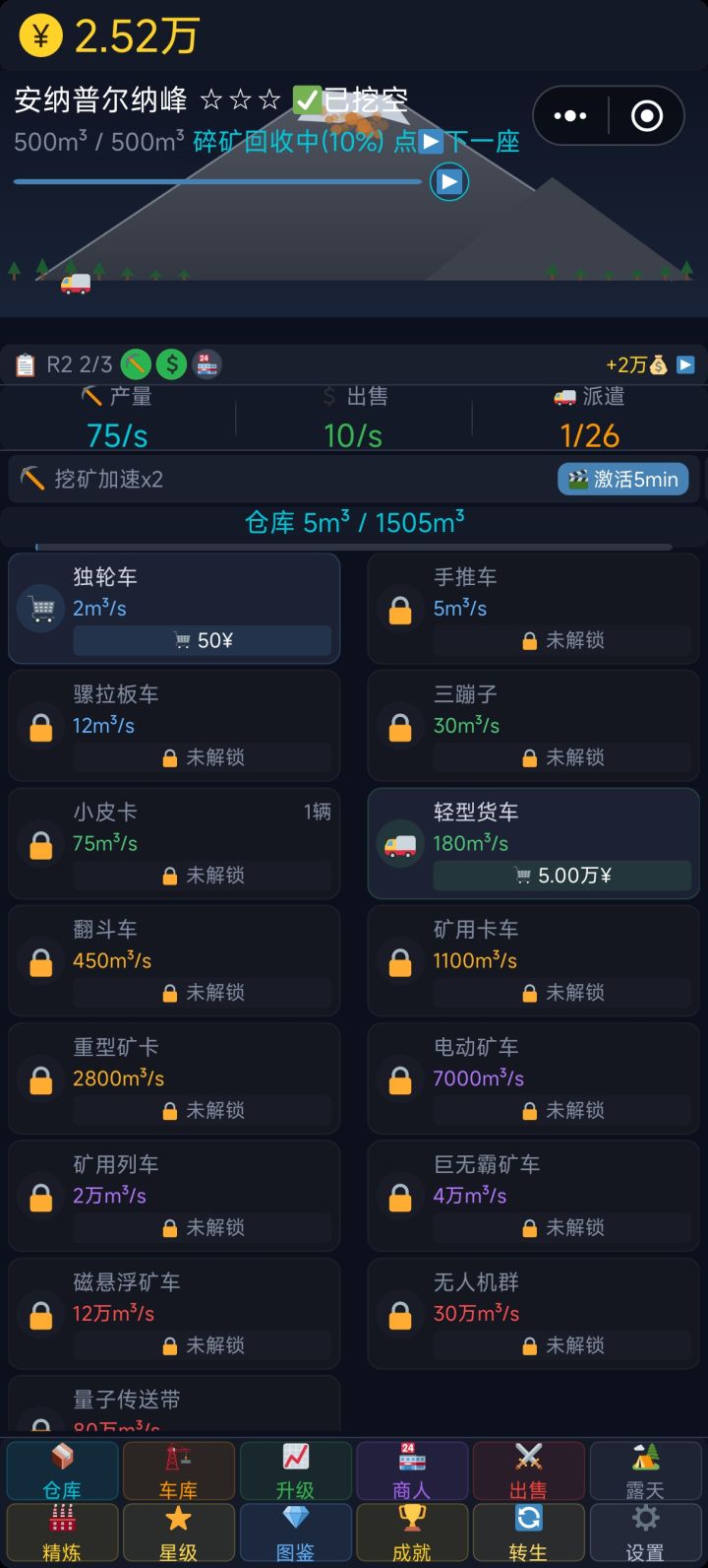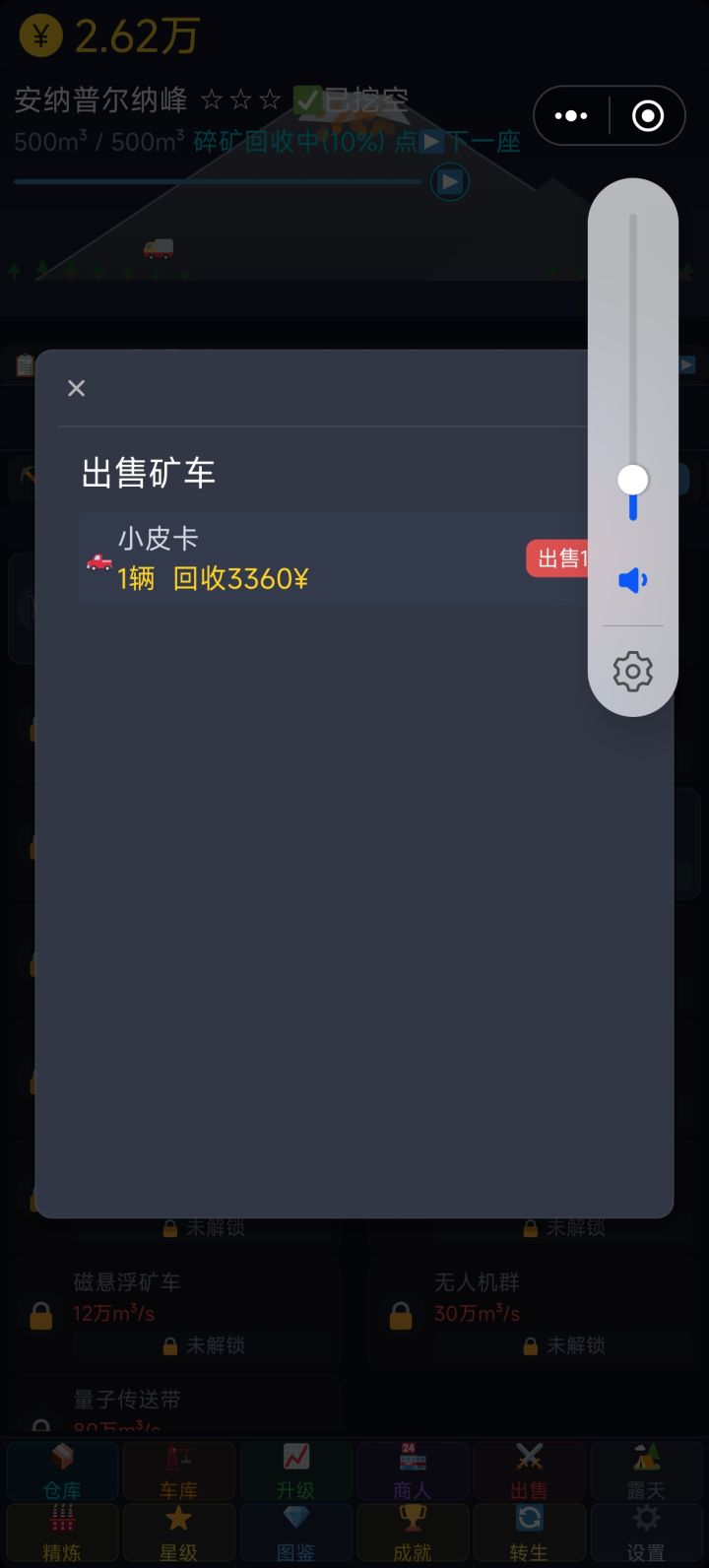 控制仓库的量比商人出售的量少就行,然后疯狂买车做任务一个任务赚的钱比你慢慢卖矿还快